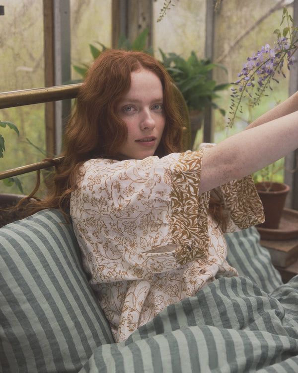 Introducing our delightfully timeless collaboration with heritage design legend, Morris & Co., founded by William Morris in 1861. This whimsical collection features a selection of sleepwear and accessories in patterns carefully handpicked from Morris & Co.'s illustrious archive. The result is a harmonious fusion of classic elegance with contemporary, relaxed sophistication, as we reimagine iconic patterns and traditional sleepwear styles through our own unique and enchanting lens.