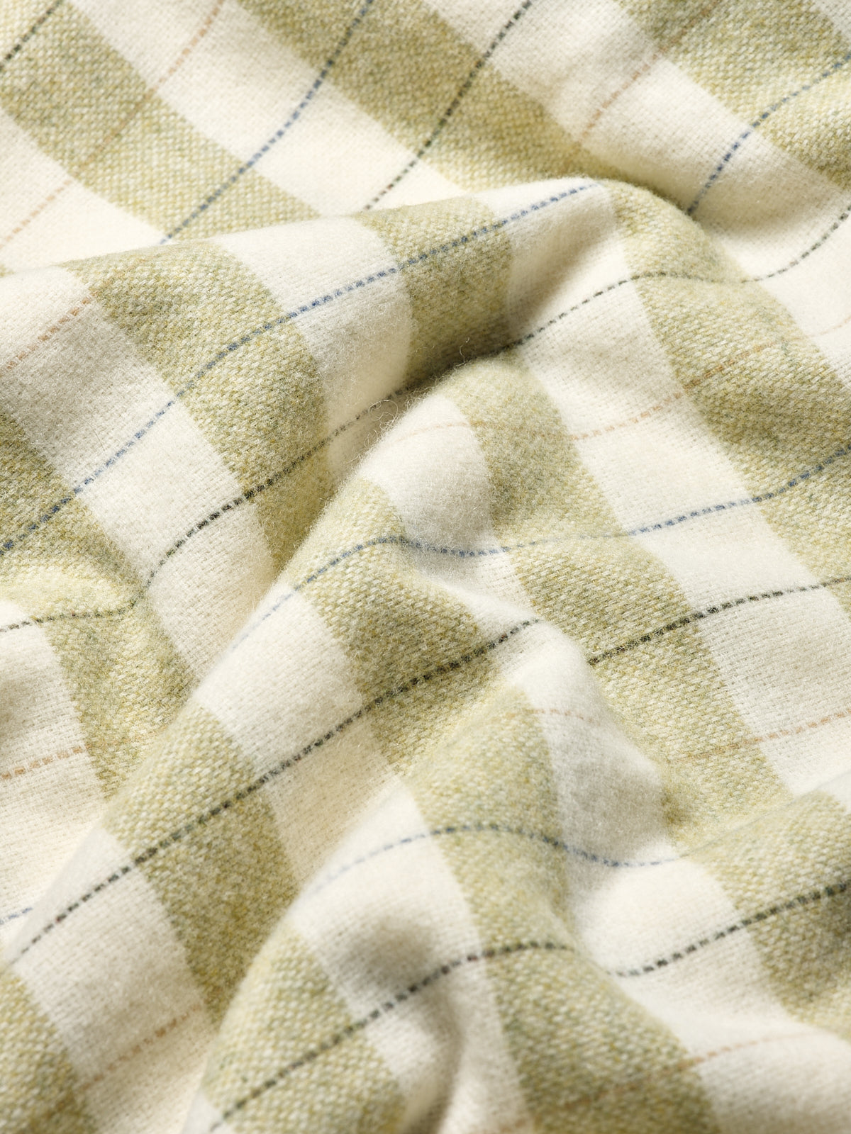 Add an extra cosy layer to your bed with this Apple Checked Stripe Wool Blanket. A dominant stripe of Apple and Birch (a neutral off-white) is crossed with detailed stitching, lending this blanket a heritage appeal. Made in Yorkshire from super soft merino wool using traditional methods, this woollen blanket is designed to go beautifully with the colours in our cotton and linen bedding collections. Layer up and snuggle down.