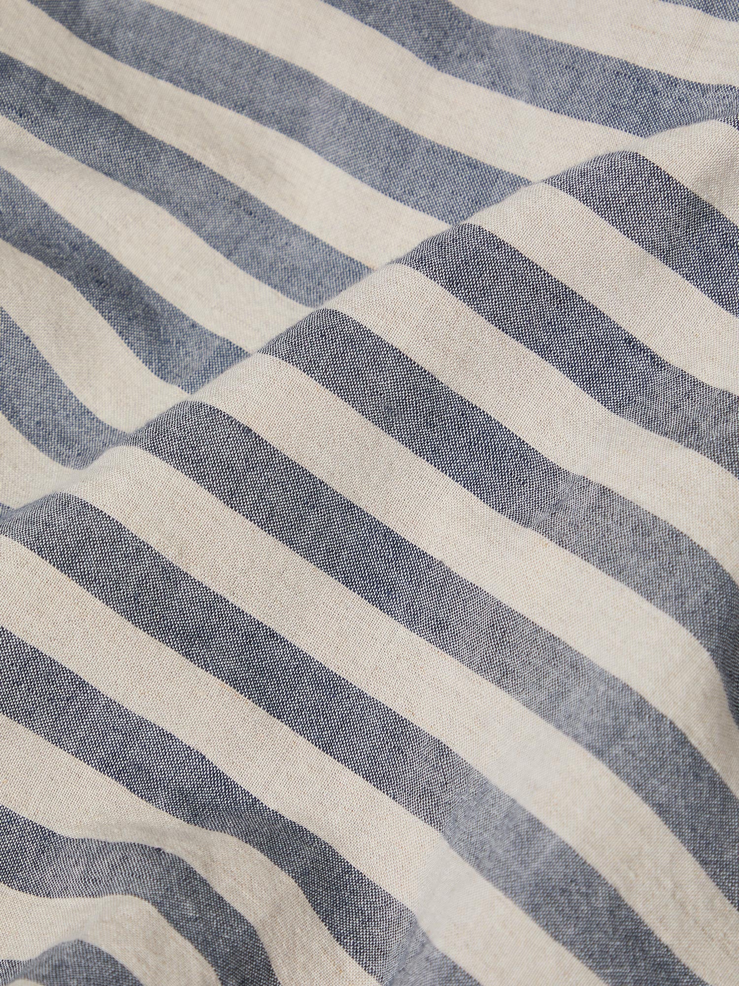 Nestle into nostalgia with our bold deck-chair-inspired Atlantic Pembroke Stripe linen blend fitted sheet. Made from only the highest-quality fibres, the breathable fabric combines the effortless look of linen with the softness of cotton. Our fitted sheets have elasticated edges all the way around and fit mattresses up to 40cm deep.