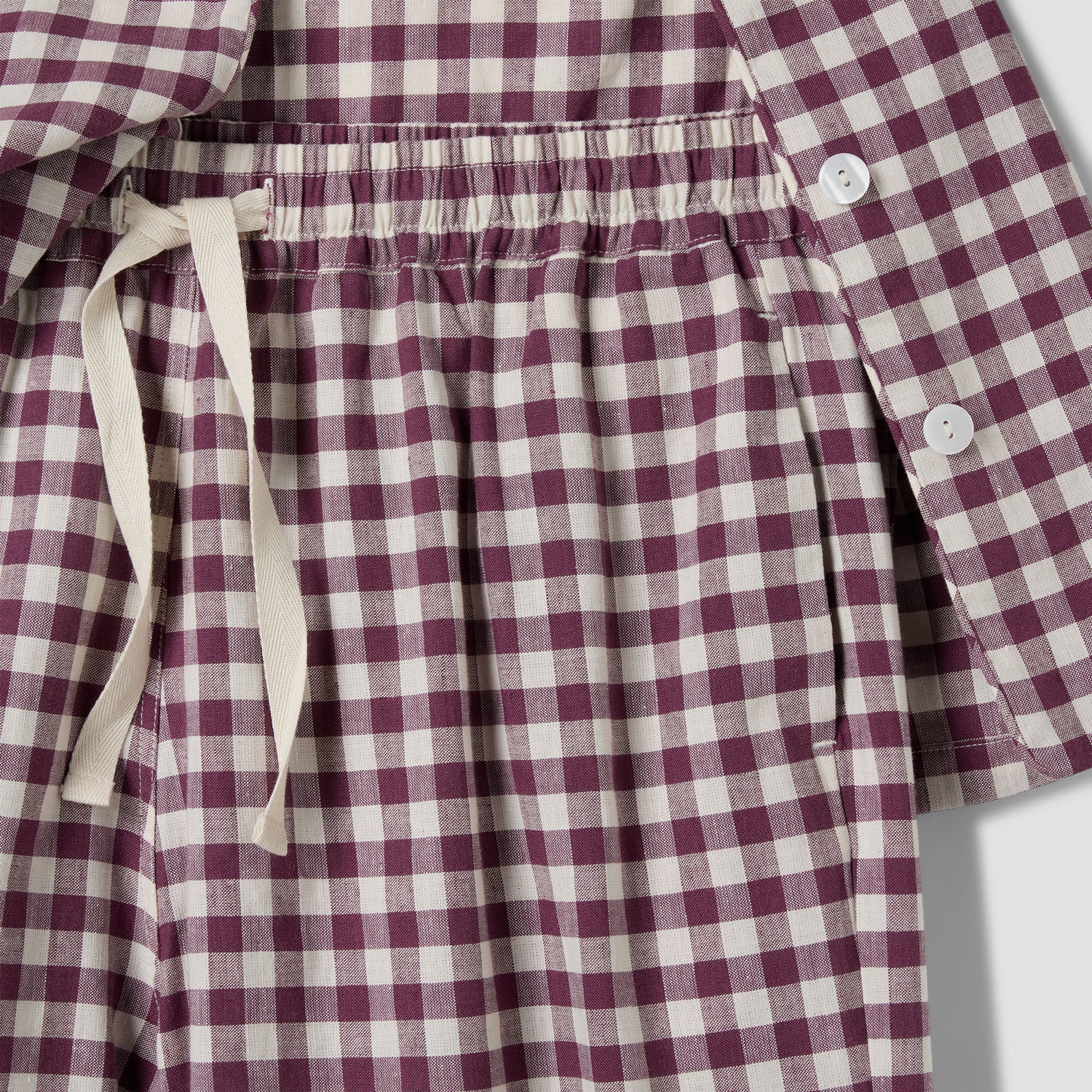 Berry Gingham Linen Blend Pyjama Trouser Set