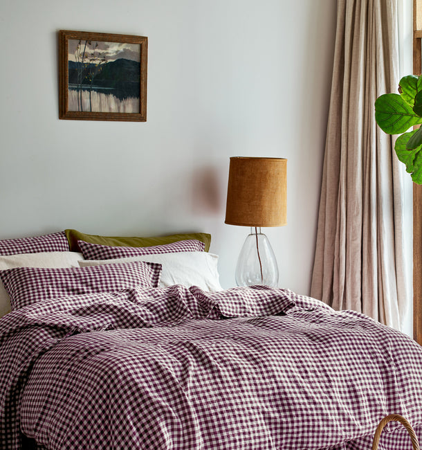 Keep your essentials neatly organised at home or on the go with our linen blend wash bag, thoughtfully crafted from offcuts of our Berry Gingham fabric. Perfect for travel or tidying up your bathroom shelf, these wash bags have a quilted design, secure zipper closure and a coated cotton lining for easy cleaning.