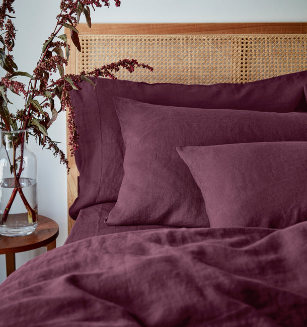 Make a statement with our Berry linen blend duvet set – a deep, rich purple that’s perfect for creating a moody bedroom or cosy retreat. Made from only the highest-quality fibres, the breathable fabric combines the effortless look of linen with the softness of cotton. Our duvet set includes one duvet cover and one pair of pillowcases (standard size for single, double and king sets; super king size for super king set).