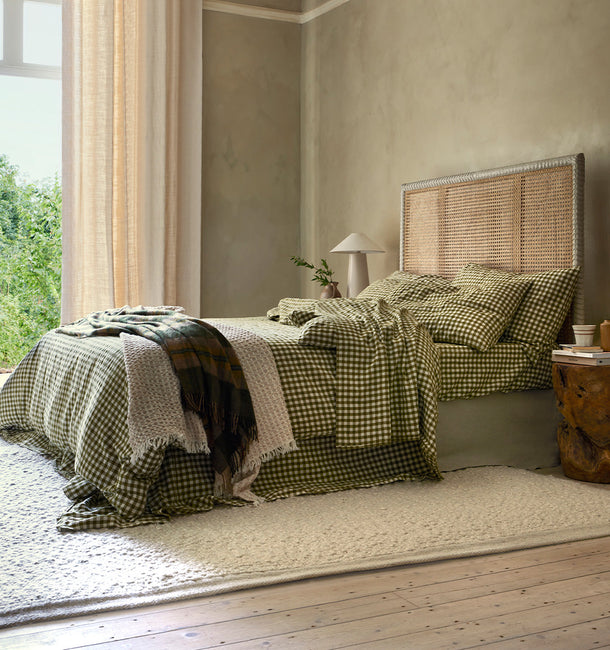 Timeless yet on-trend, our playful Botanical Green Gingham linen blend duvet set is the ultimate choice for modern cottagecore style. Made from only the highest-quality fibres, the breathable fabric combines the effortless look of linen with the softness of cotton. Our duvet set includes one duvet cover and one pair of pillowcases (standard size for single, double and king sets; super king size for super king set).