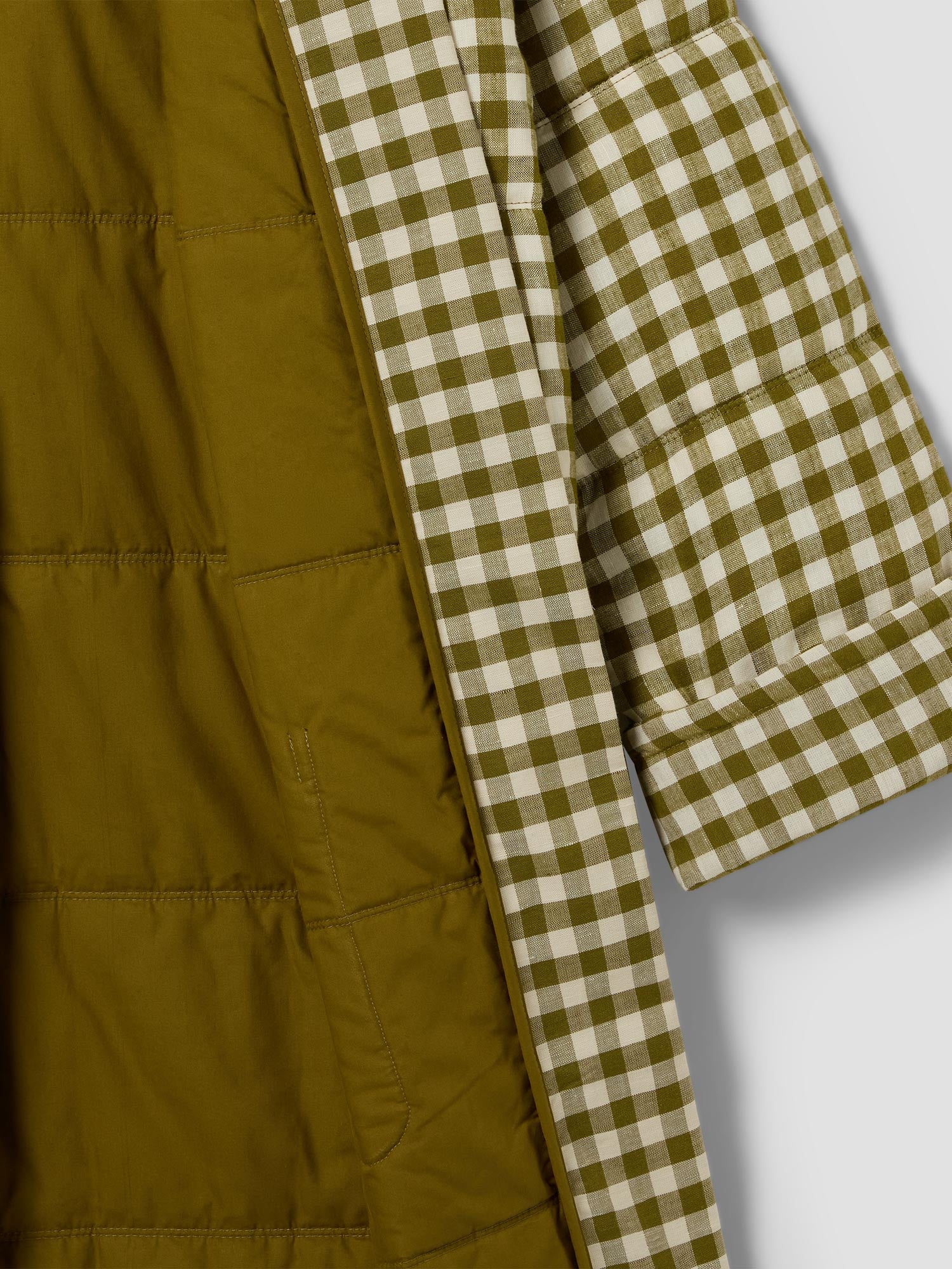 In earthy Botanical Green Gingham, this linen blend housecoat is made for cosy moments – from crisp mornings to laid-back evenings. With its oversized style, quilted design and practical pockets, it’s loungewear you’ll reach for every day.