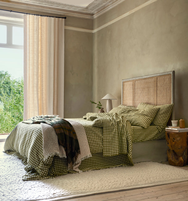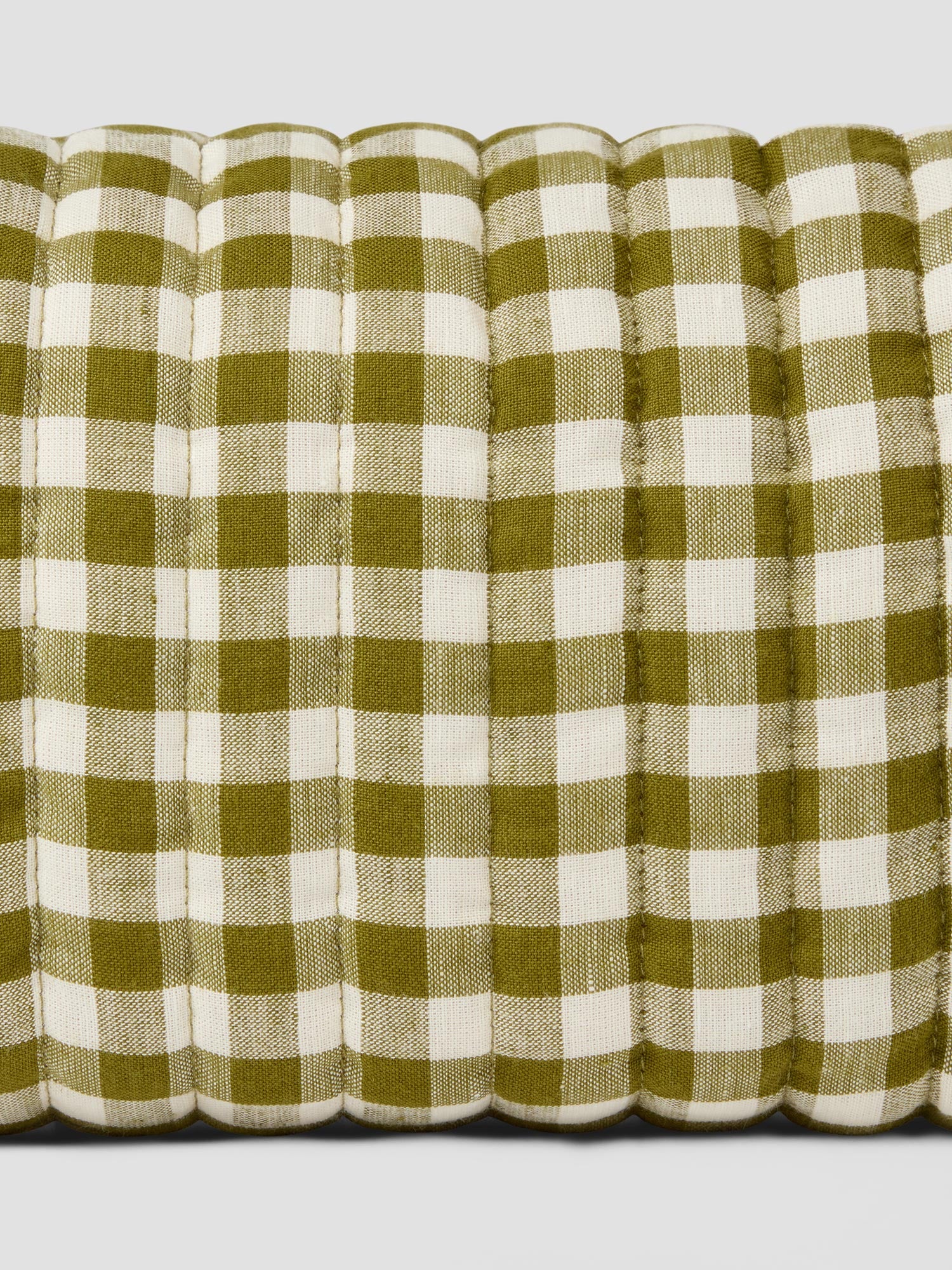 Keep your essentials neatly organised at home or on the go with our linen blend wash bag, thoughtfully crafted from offcuts of our Botanical Green Gingham fabric. Perfect for travel or tidying up your bathroom shelf, these wash bags have a quilted design, secure zipper closure and a coated cotton lining for easy cleaning.