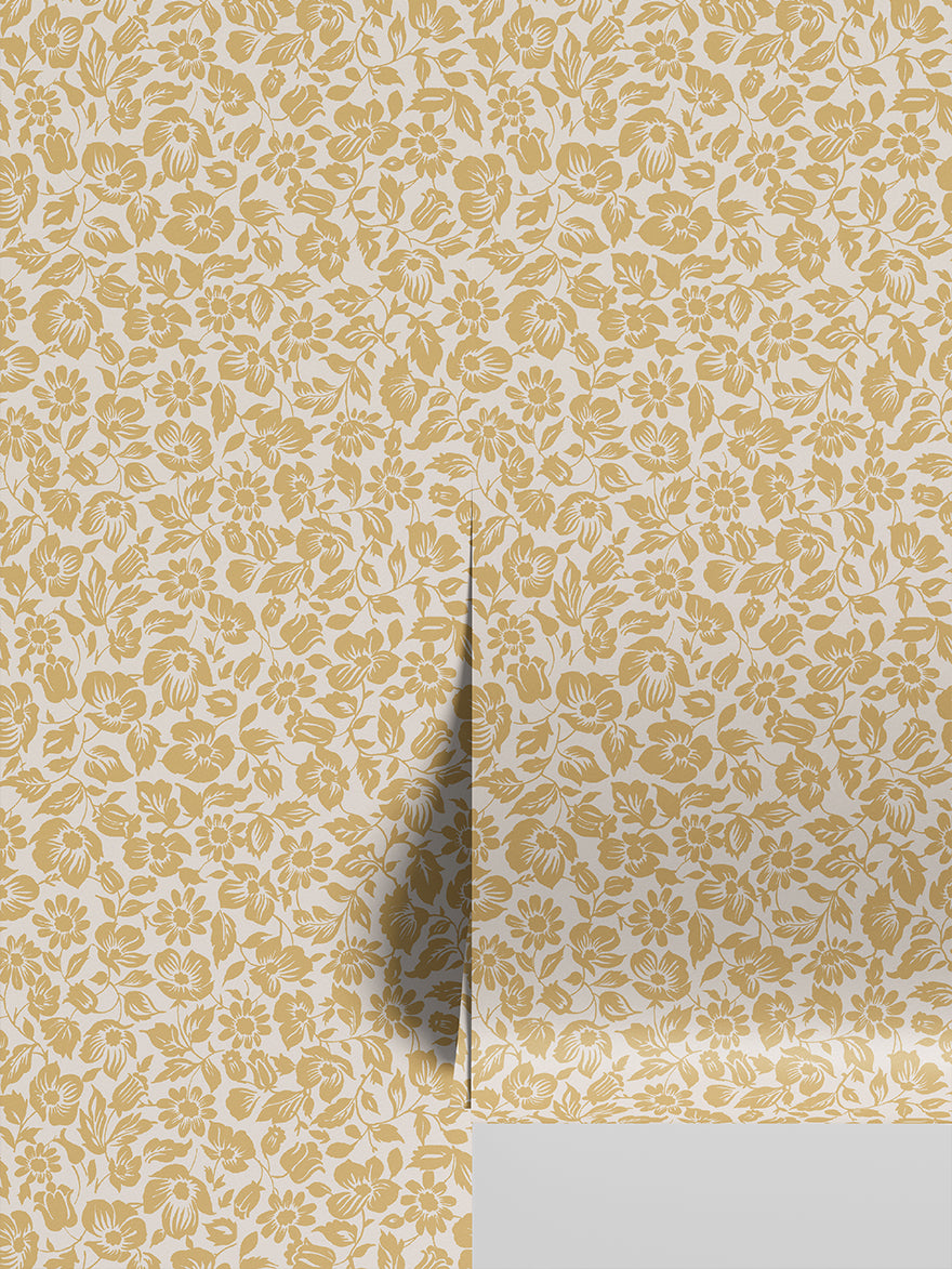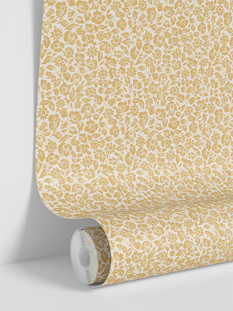 Butterscotch Meadow Floral Wallpaper