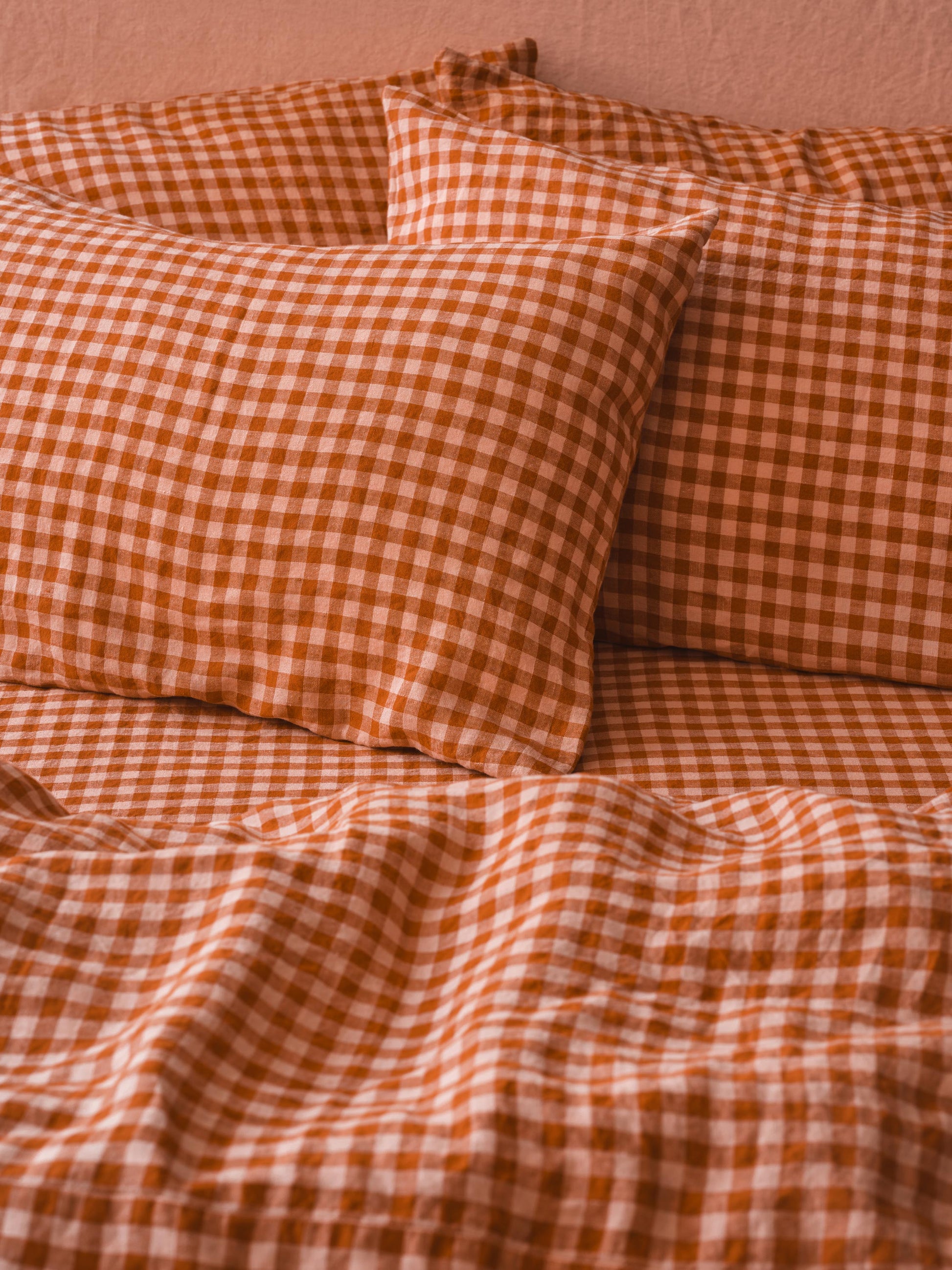 Pairing rich Cinnamon with soft Peach, our Colour Drenched Gingham 100% linen pillowcases serve up the perfect laid-back, layered look. Made from European flax for a beautiful lived-in look, our linen is lightweight yet durable and only gets softer with wear. All our pillowcases have envelope closures, making sure your pillow stays out of sight.