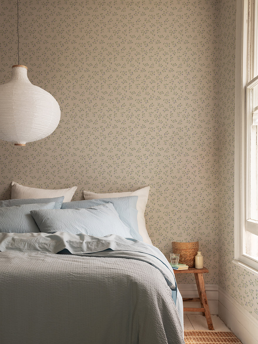 With a subtle pattern bursting with romantic country charm, this vintage-inspired Spring Sprig wallpaper is perfect for adding delicate florals to your space. Our non-woven wallpaper is easy to apply and incredibly hardwearing, with a thick feel and textile-like appearance.