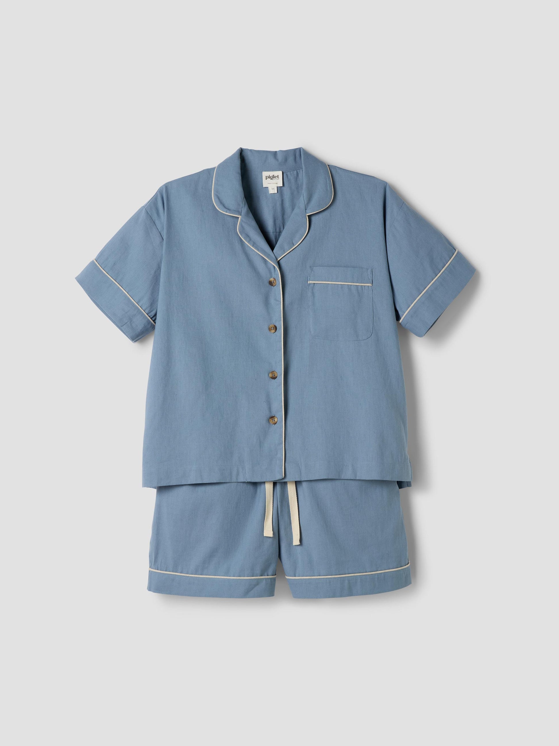 Made for easy, breathable wear, our Dusk Blue linen blend pyjama short set will have you waking up feeling refreshed and ready to seize the day. Combining the laid-back look of linen with the gentle softness of cotton in our soothing blue hue, these pyjamas are destined to become your new nighttime favourite.