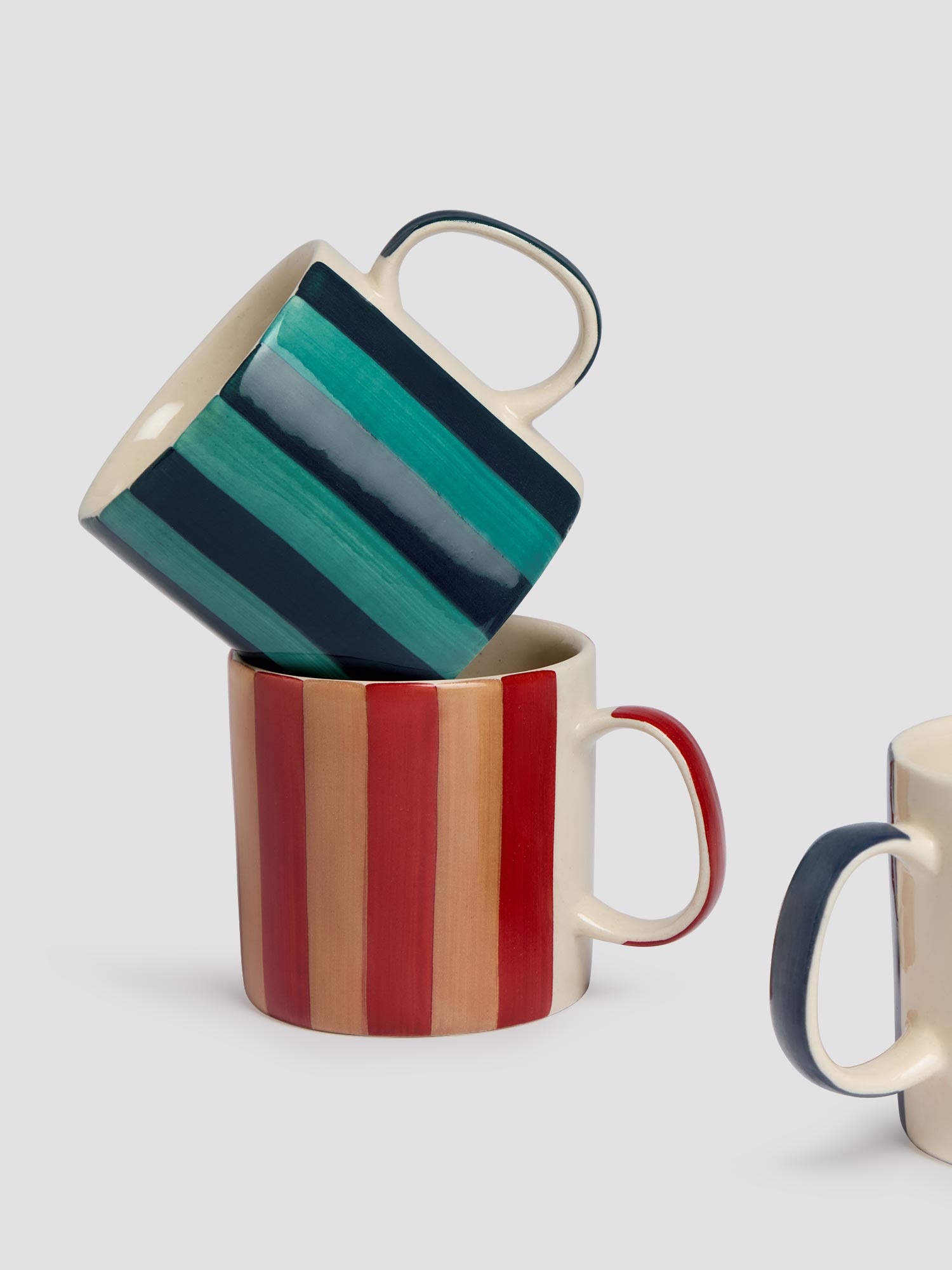 Start your day right with our joyful Dusk Blue Pembroke Stripe ceramic mug. Crafted by artisans and hand-painted with our iconic striped design, this durable, dishwasher-safe mug is made for everyday use – just the thing for your favourite morning beverage.