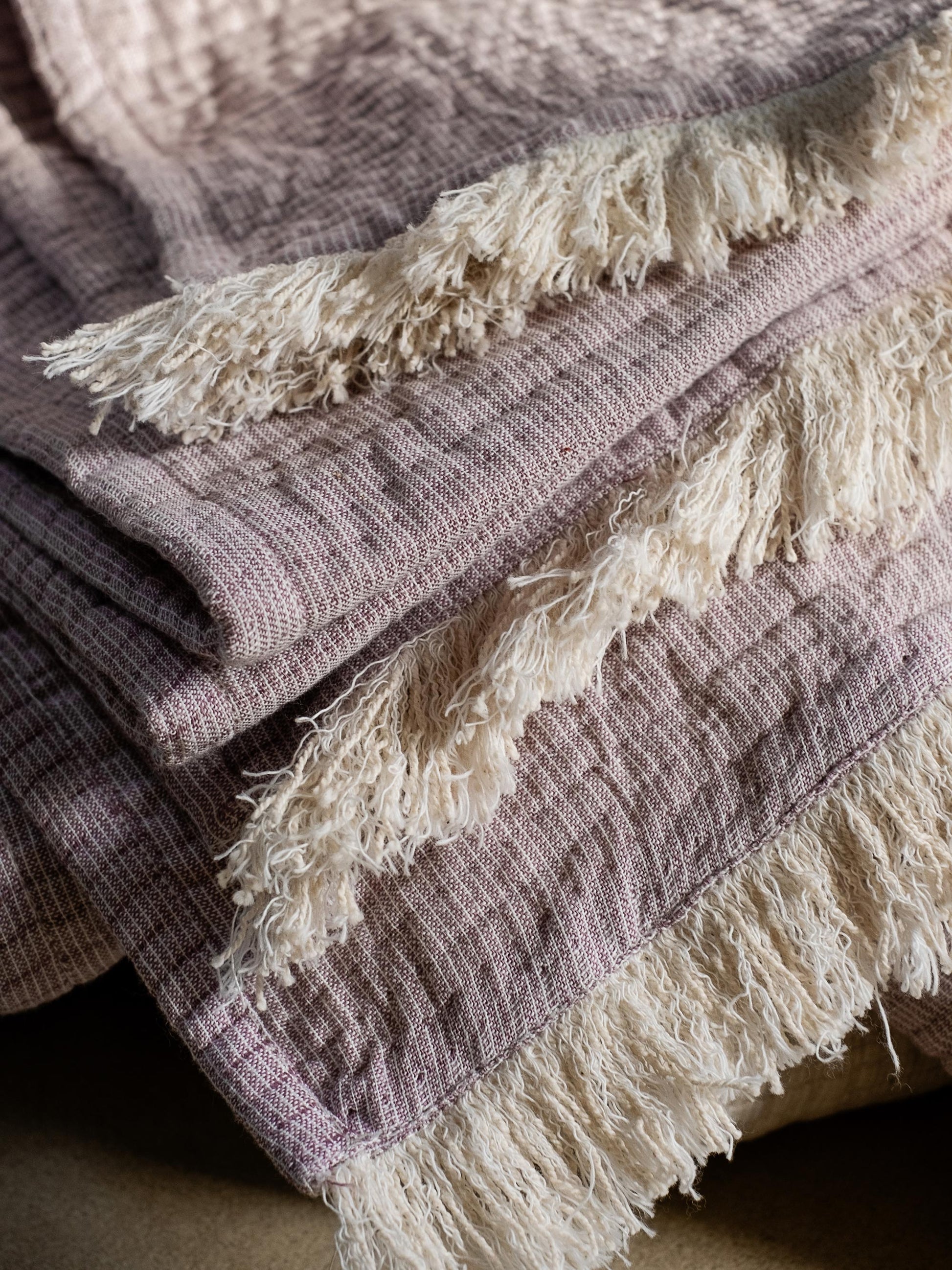 The Elderberry cotton textured throw is expertly woven with a double-weave design, creating a subtle, ruched texture that offers breathable warmth and a soft finish. Topped off with delicate fringed edges, this throw is perfect for layering on a bed or draping over your favourite armchair.