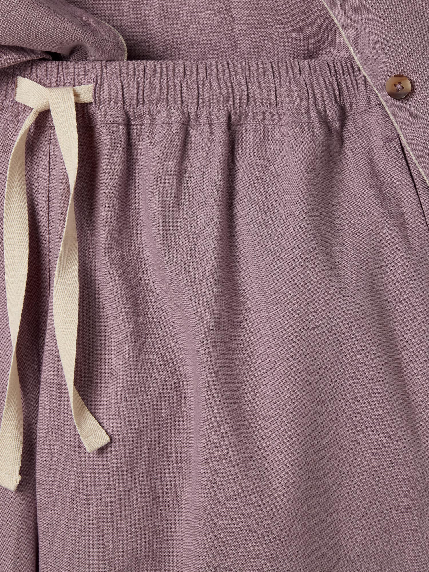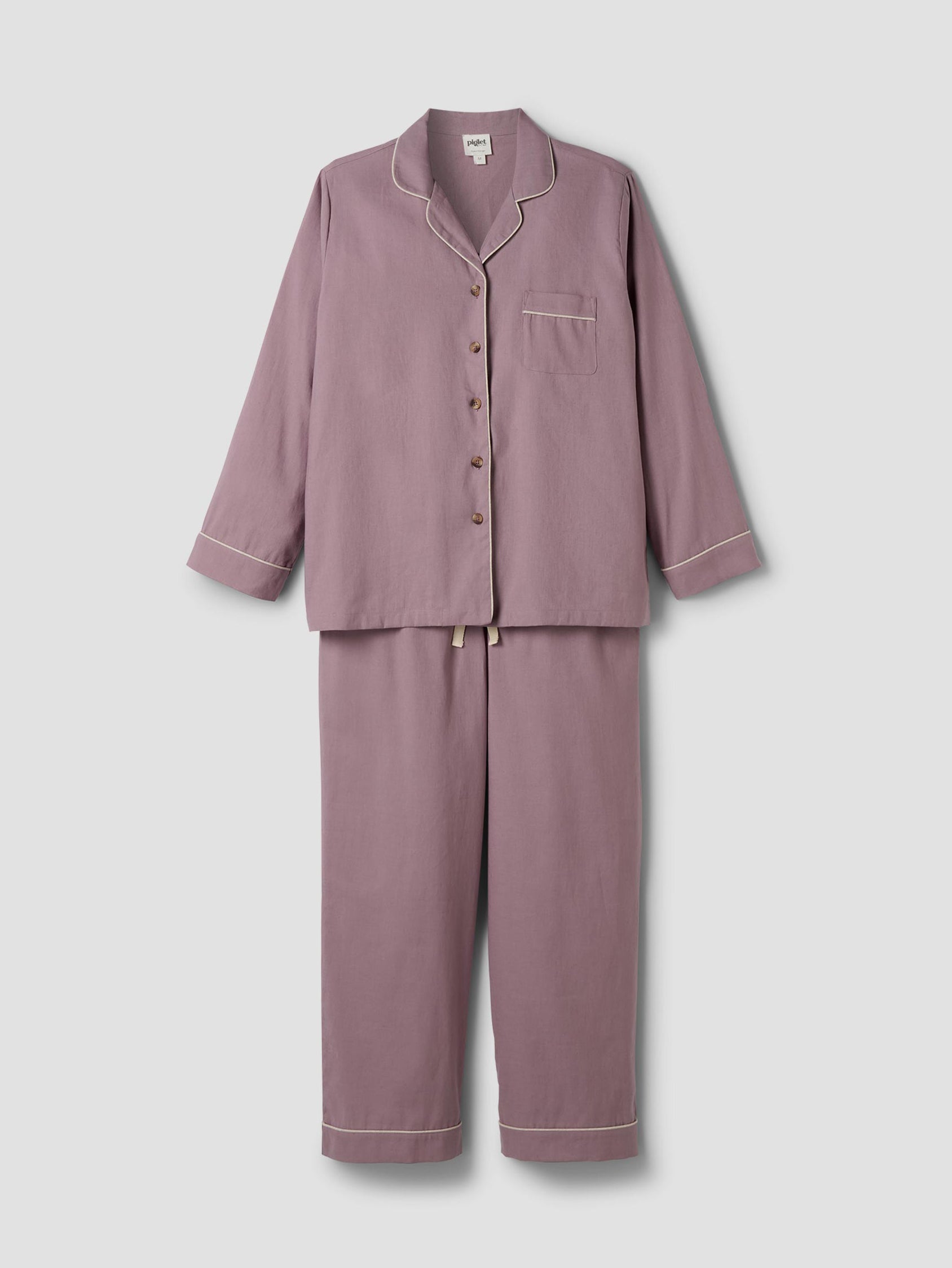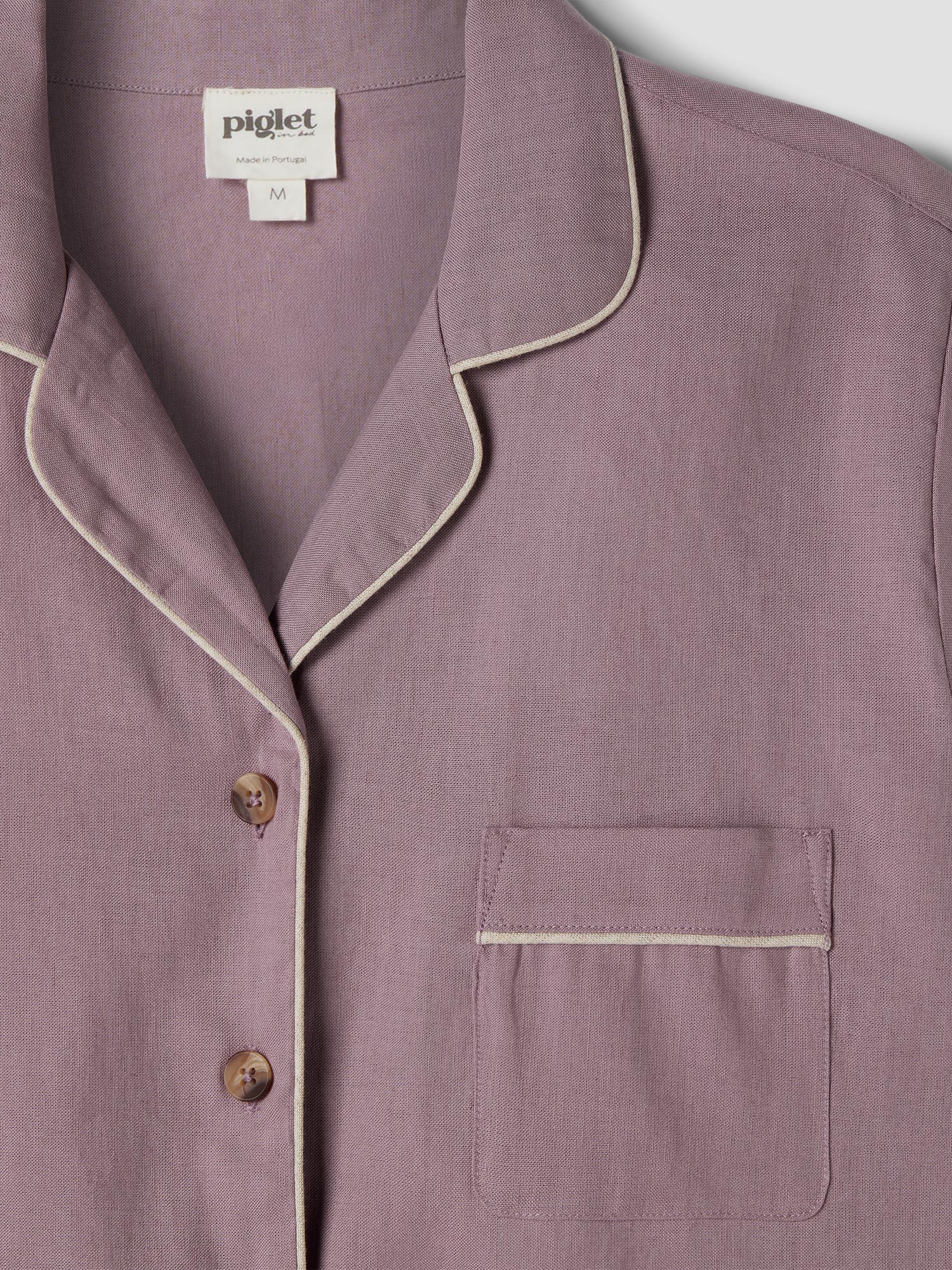 Made for easy, breathable wear, our Elderberry linen blend pyjama trouser set will have you waking up feeling refreshed and ready to seize the day. Combining the laid-back look of linen with the gentle softness of cotton in our dusky purple hue, these pyjamas are destined to become your new nighttime favourite.