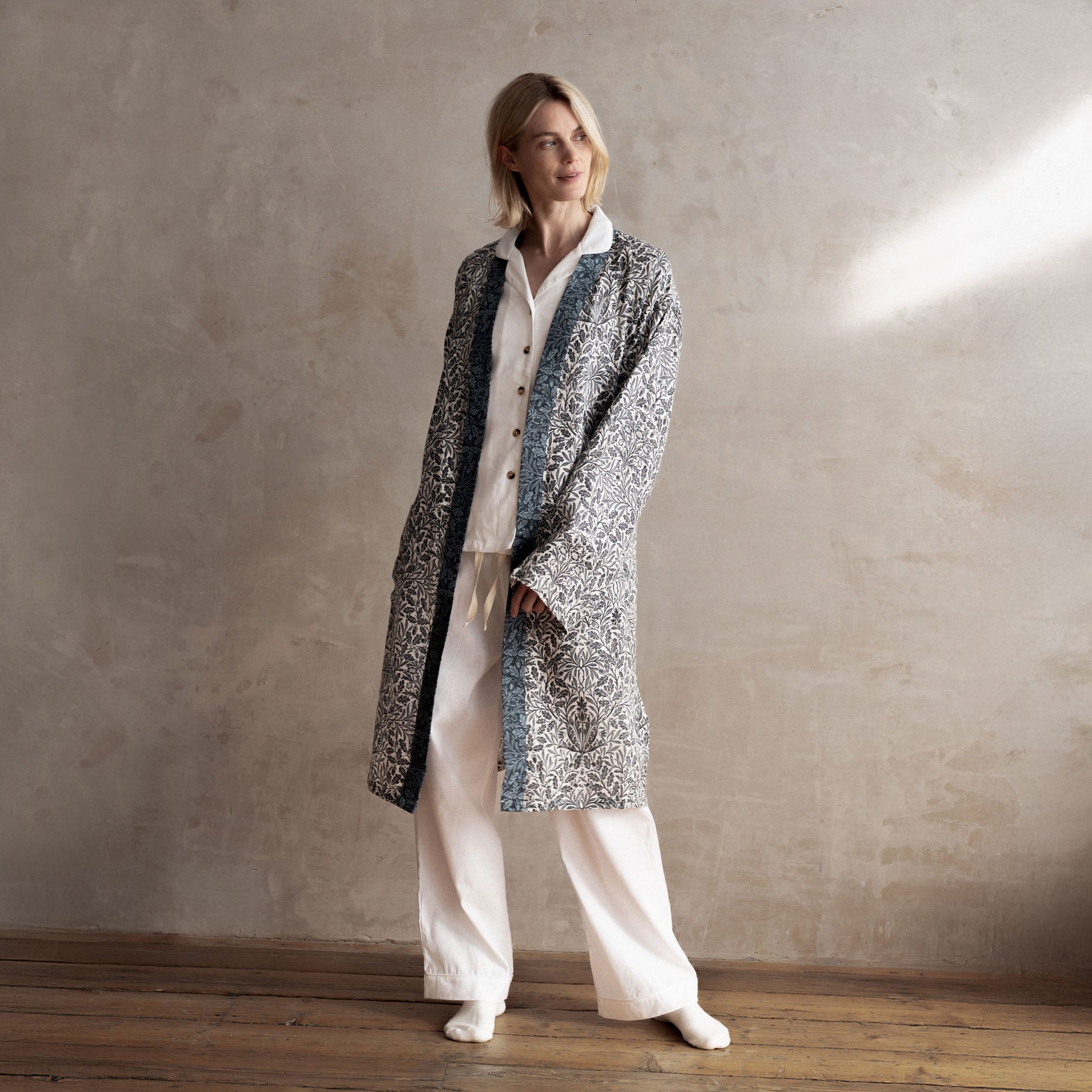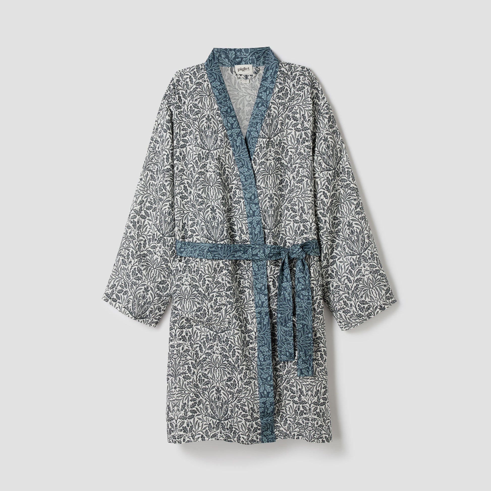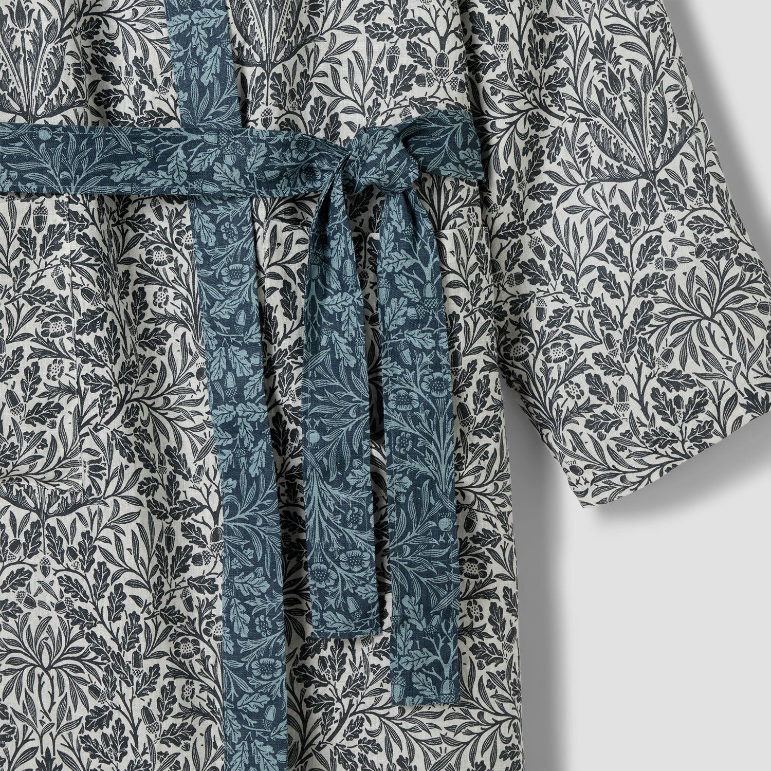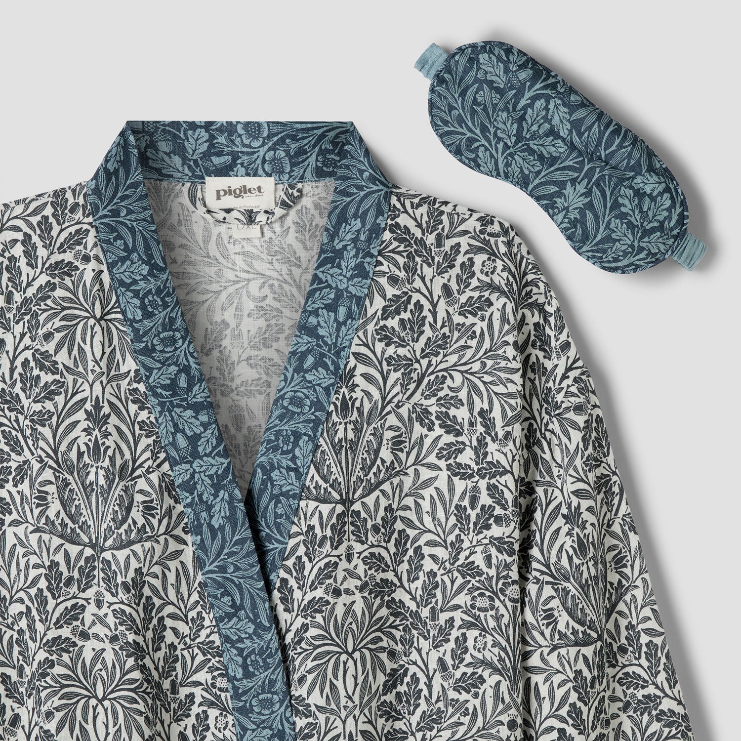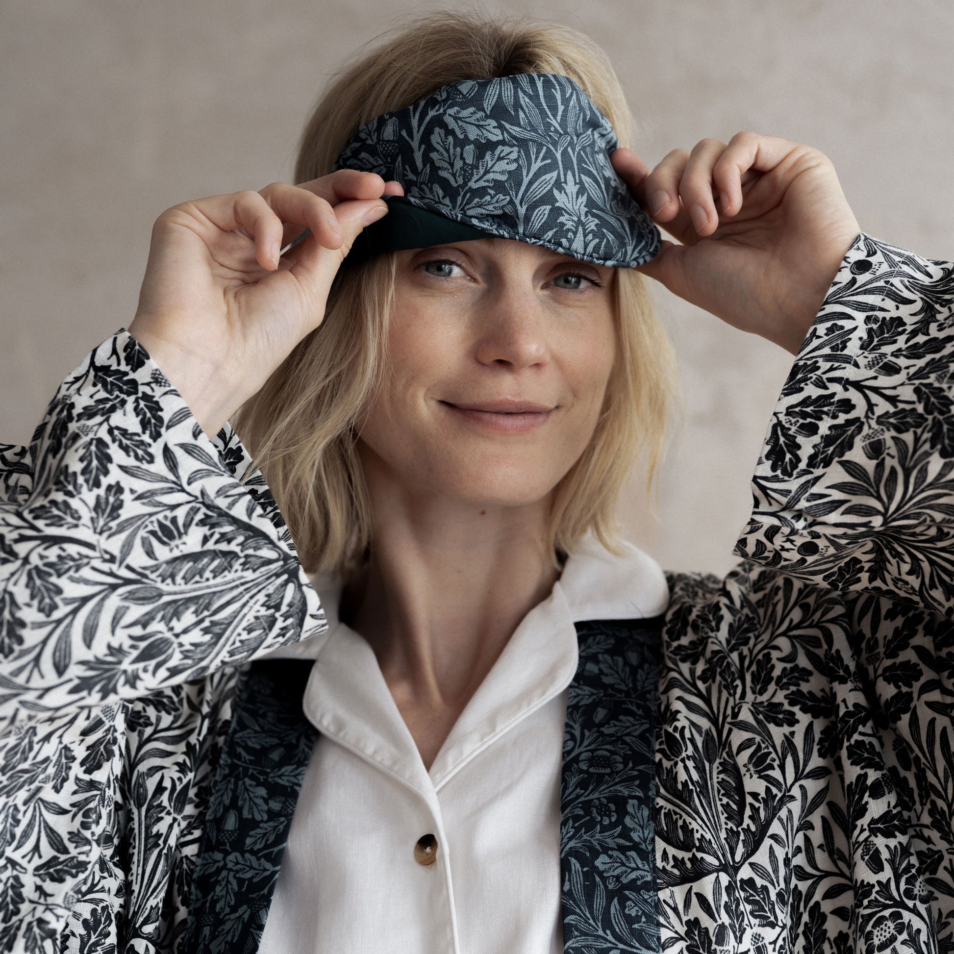Designed in collaboration with Morris & Co., our Ernest Blue linen robe features the whimsical Acorn pattern created by William Morris in 1879. The classic motif pays homage to the brand’s rich heritage while faithfully reimagining it for modern living. To complete the set, this robe comes with a complimentary matching sleep mask – the perfect accessory for a restful night’s sleep.