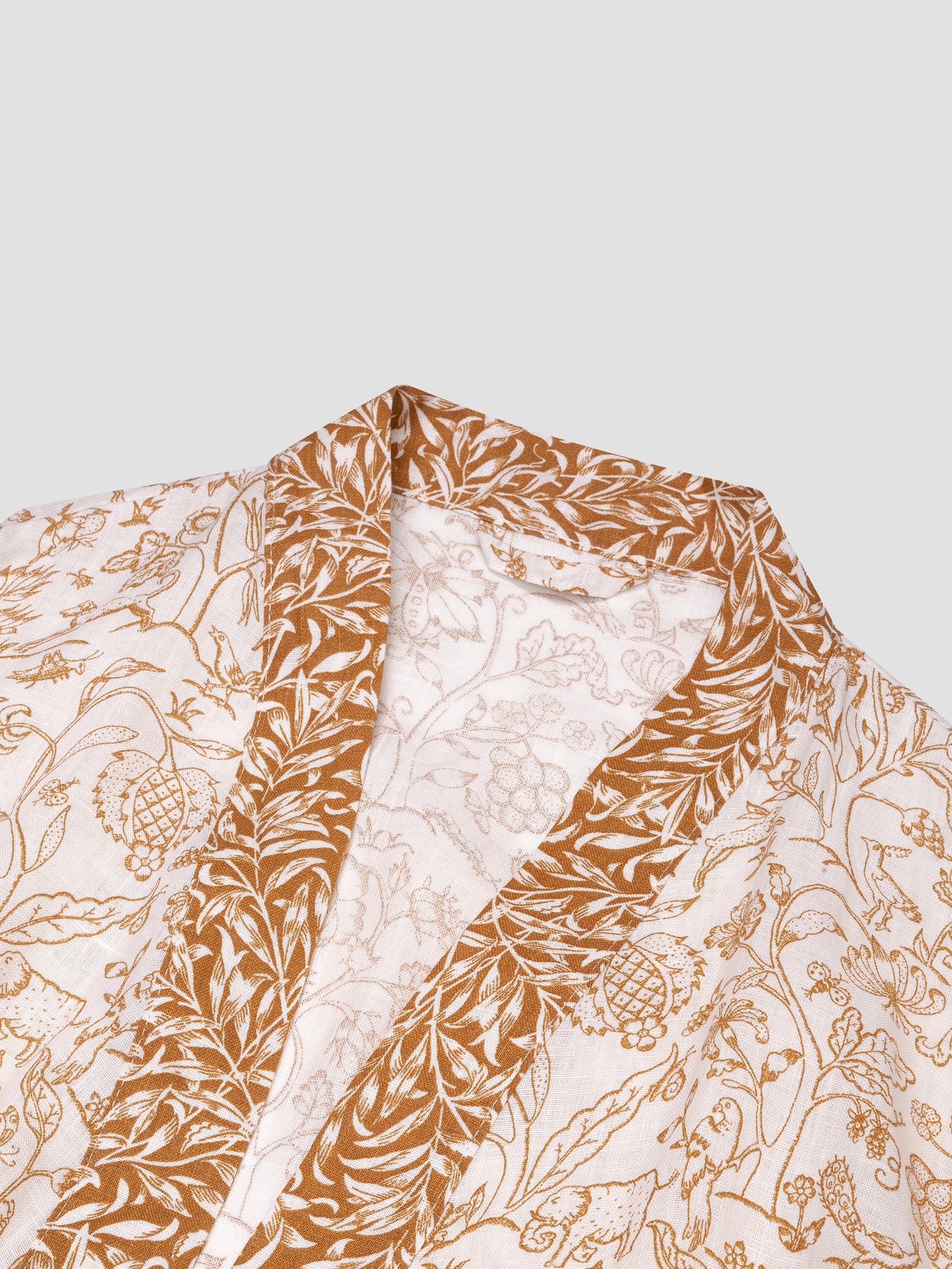 Designed in collaboration with Morris & Co., our Ernest White linen robe features the whimsical Middlemore pattern inspired by a quilt embroidery created by May Morris in 1889. Featuring delicately drawn flora and fauna, the classic motif pays homage to the brand’s rich heritage while faithfully reimagining it for modern living.