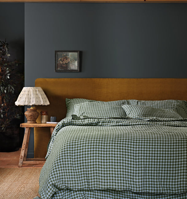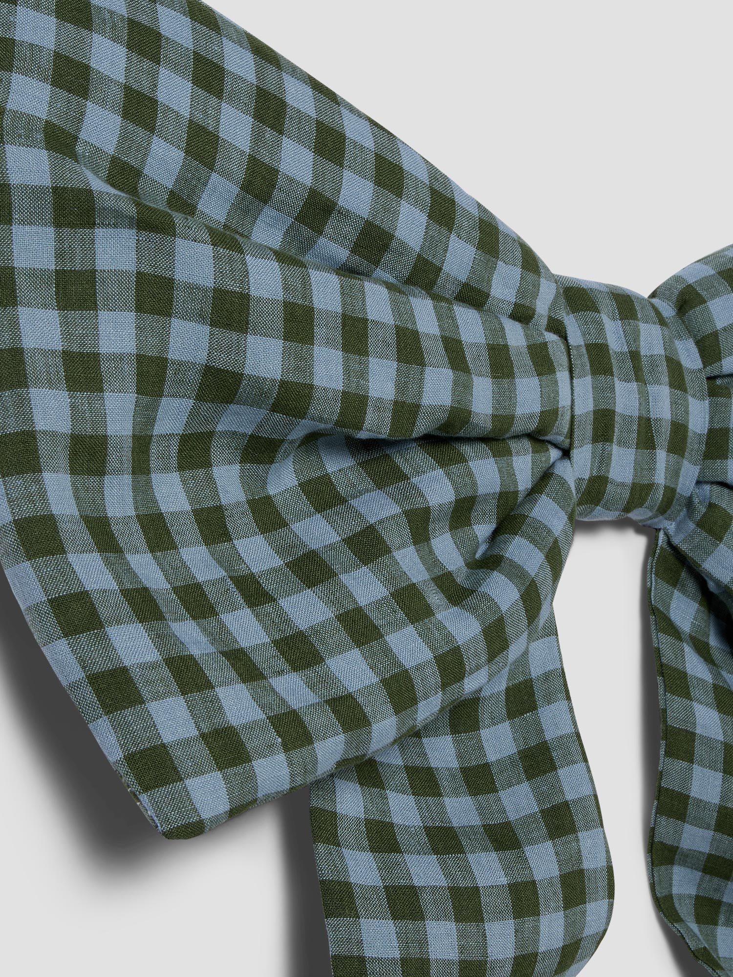 Fern Green & Dusk Blue Colour Drenched Gingham Linen Blend Bow