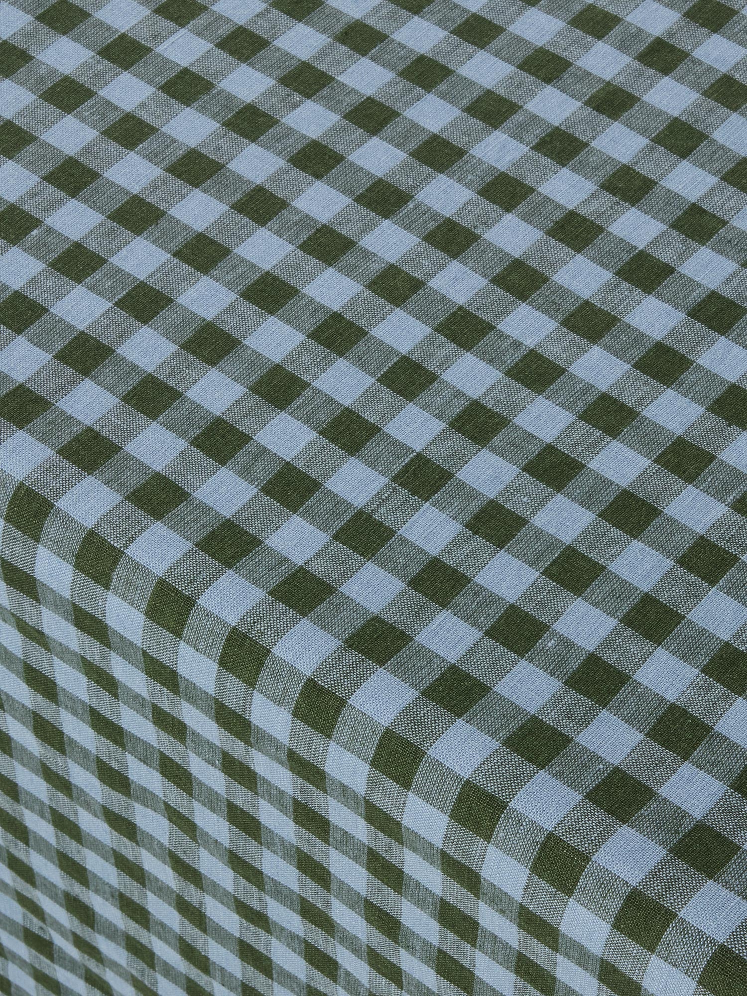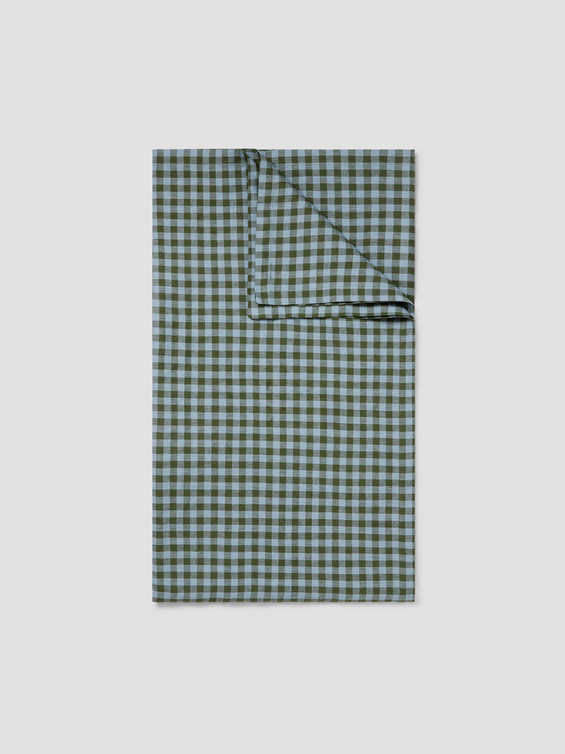 Fern Green & Dusk Blue Colour Drenched Gingham Linen Blend Tablecloth