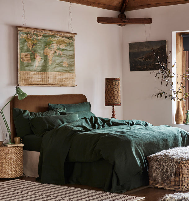 Create a moody statement bedroom or dreamy, relaxed retreat with our earthy Fern Green linen blend flat sheet. Made from only the highest-quality fibres, the breathable fabric combines the effortless look of linen with the softness of cotton. Layer in the colder months or use as a lightweight cover on warmer summer nights.