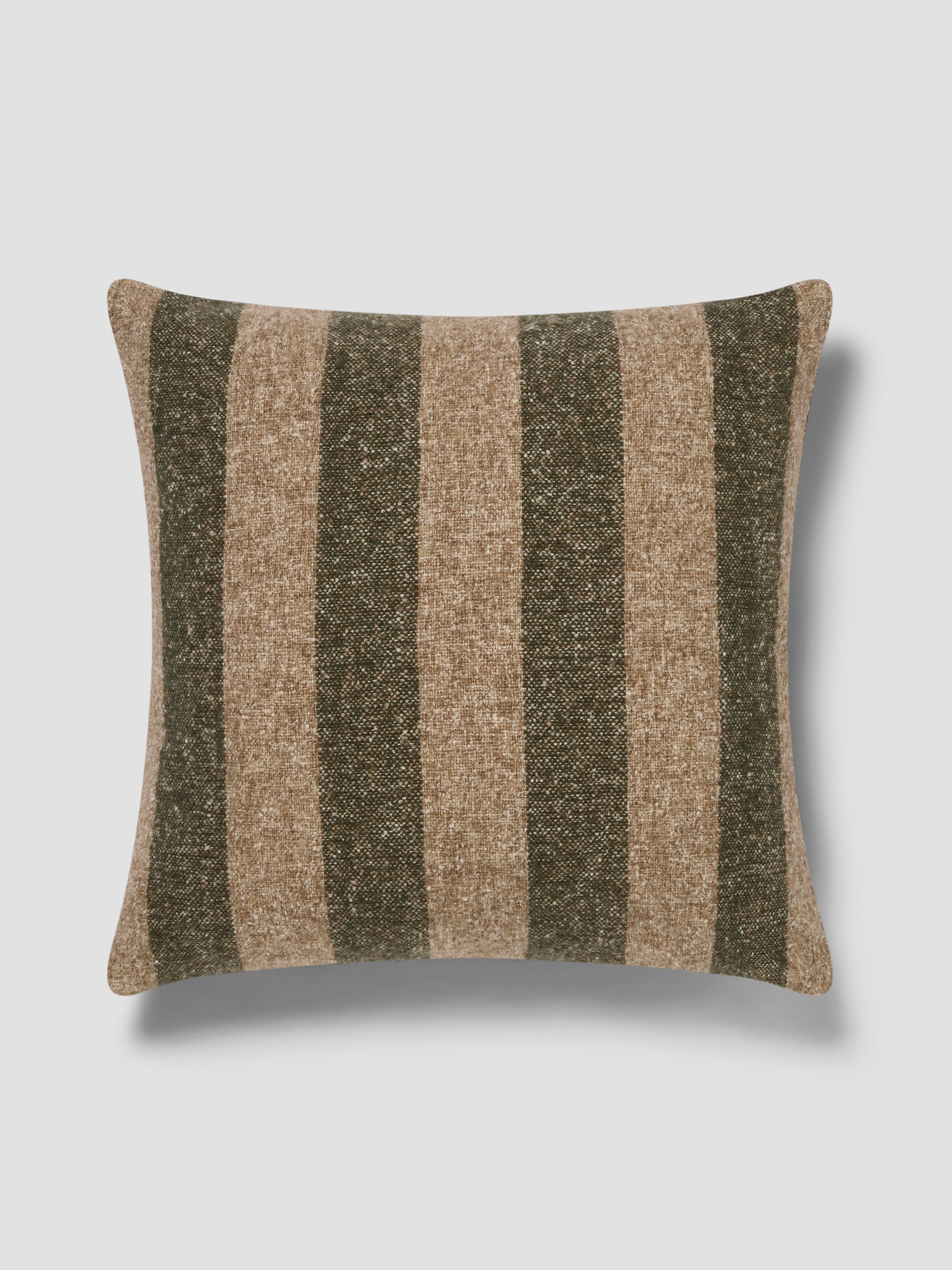 Need a little extra warmth and texture in your space? This flecked cushion is just the ticket. Woven from a soft wool blend, the wide stripes in earthy Fern Green and complementary Oatmeal give a lovely lived-in feel – perfect with our Pembroke Stripe bedding or matching hues. For a luxuriously plump look, combine with our corresponding cushion insert.