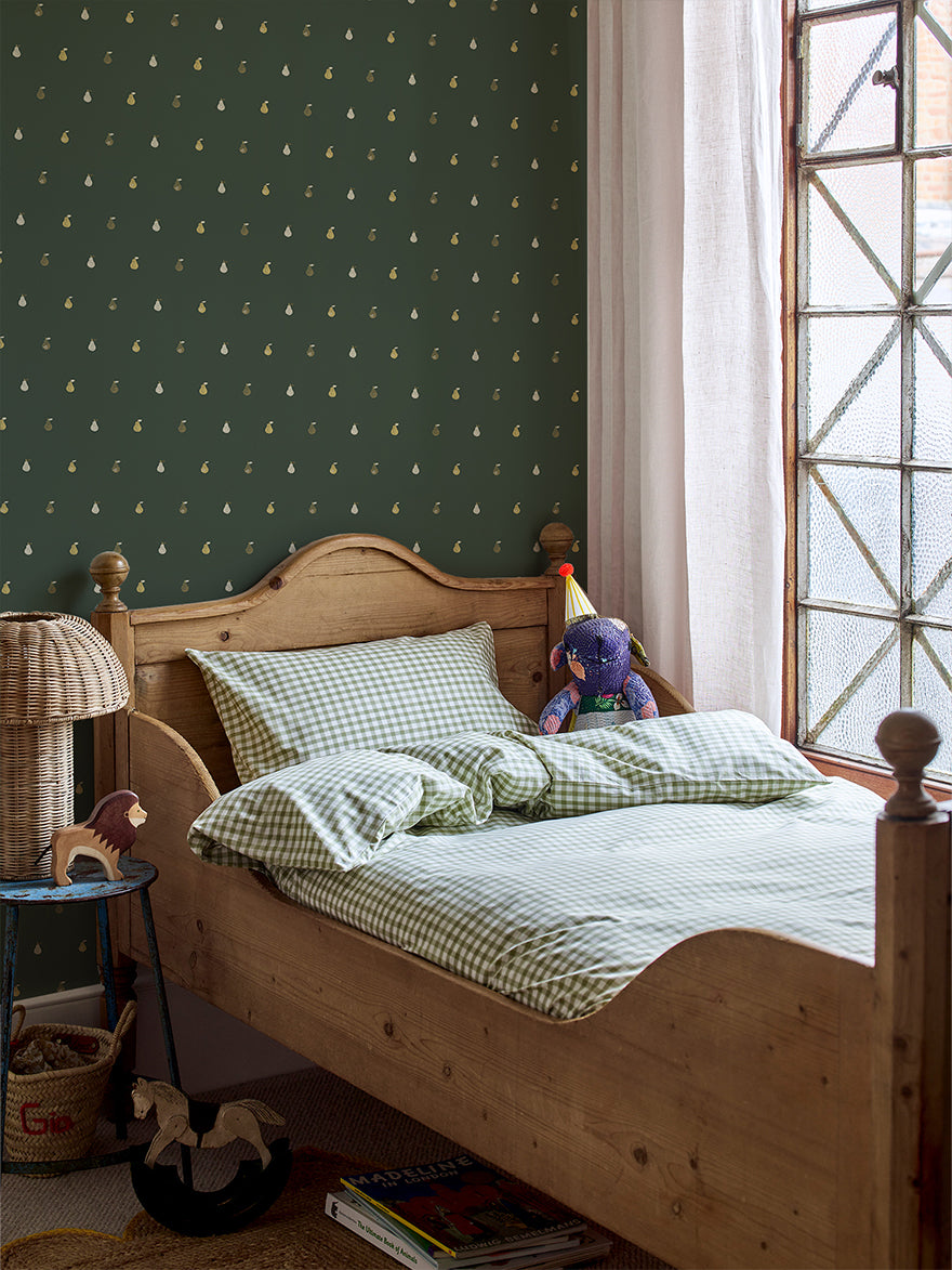 With a hand-painted pattern created by our in-house design team, this illustrated Pears wallpaper brings a sense of fun and adventure to playful spaces. Our non-woven wallpaper is easy to apply and incredibly hardwearing, with a thick feel and textile-like appearance.