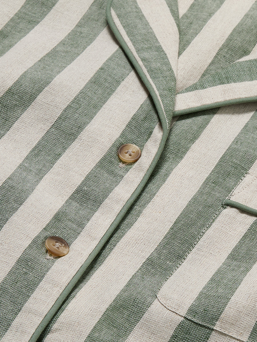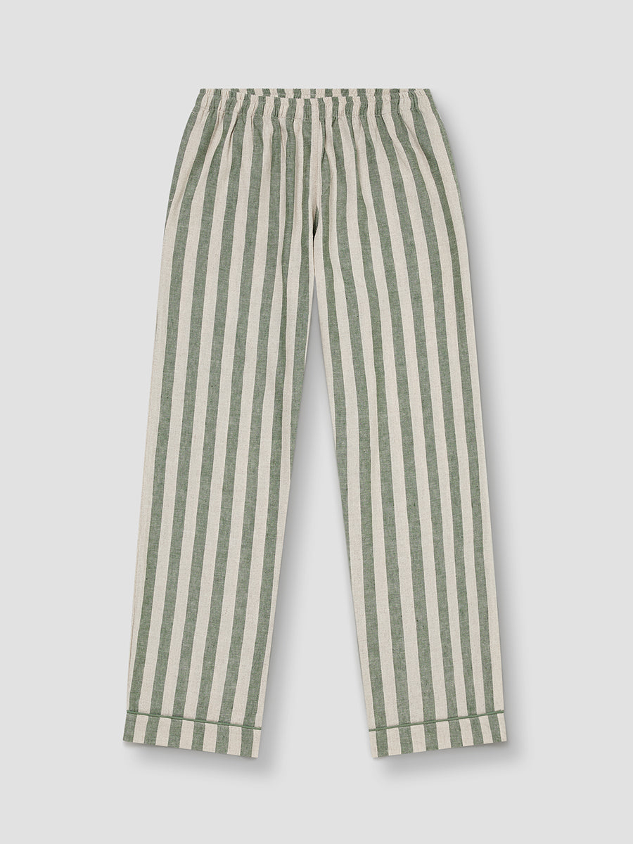 Fern Green Pembroke Stripe Linen Blend Pyjama Trouser Set
