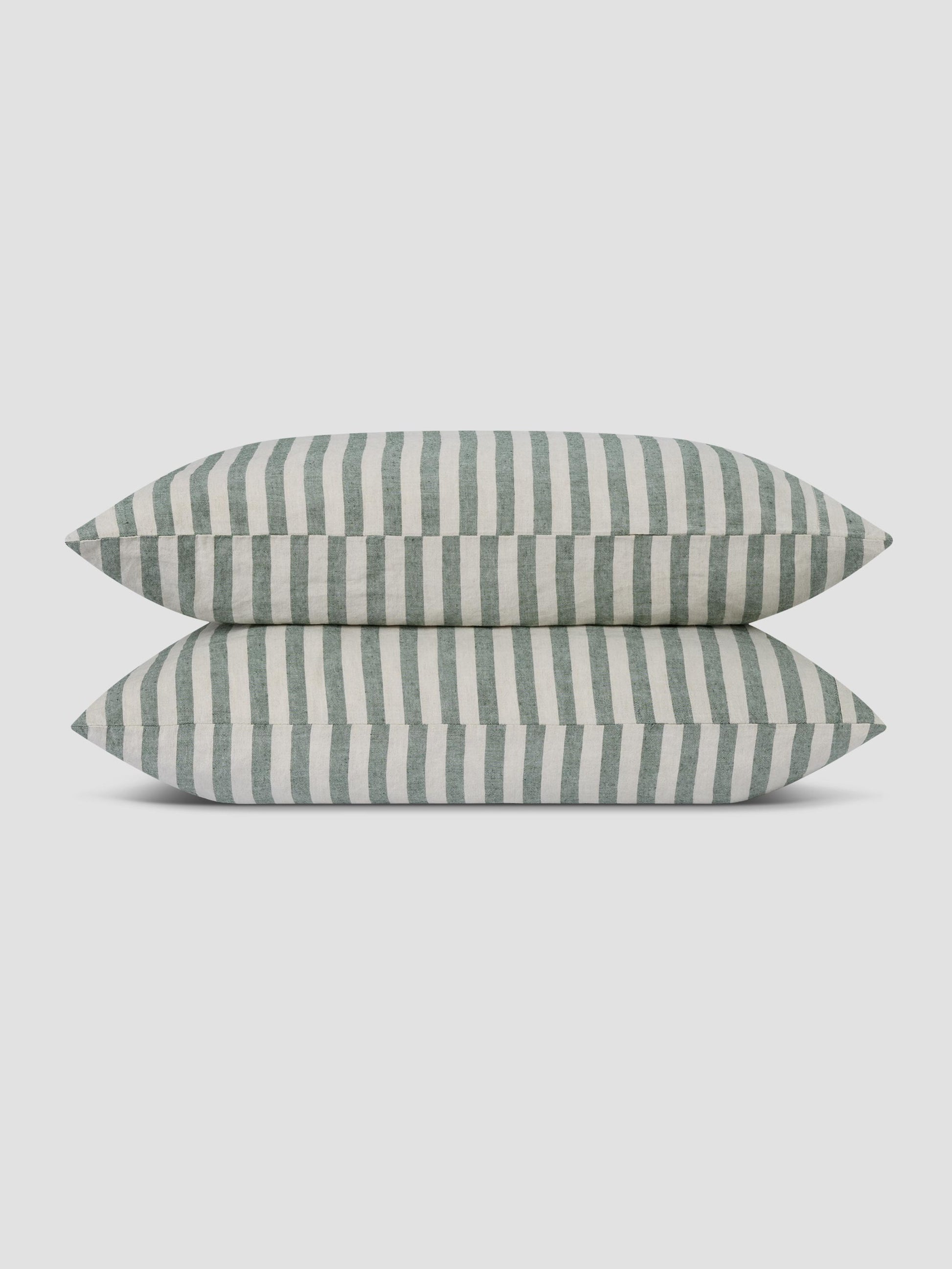 Fern Green Pembroke Stripe Linen Blend Pillowcases (Pair)