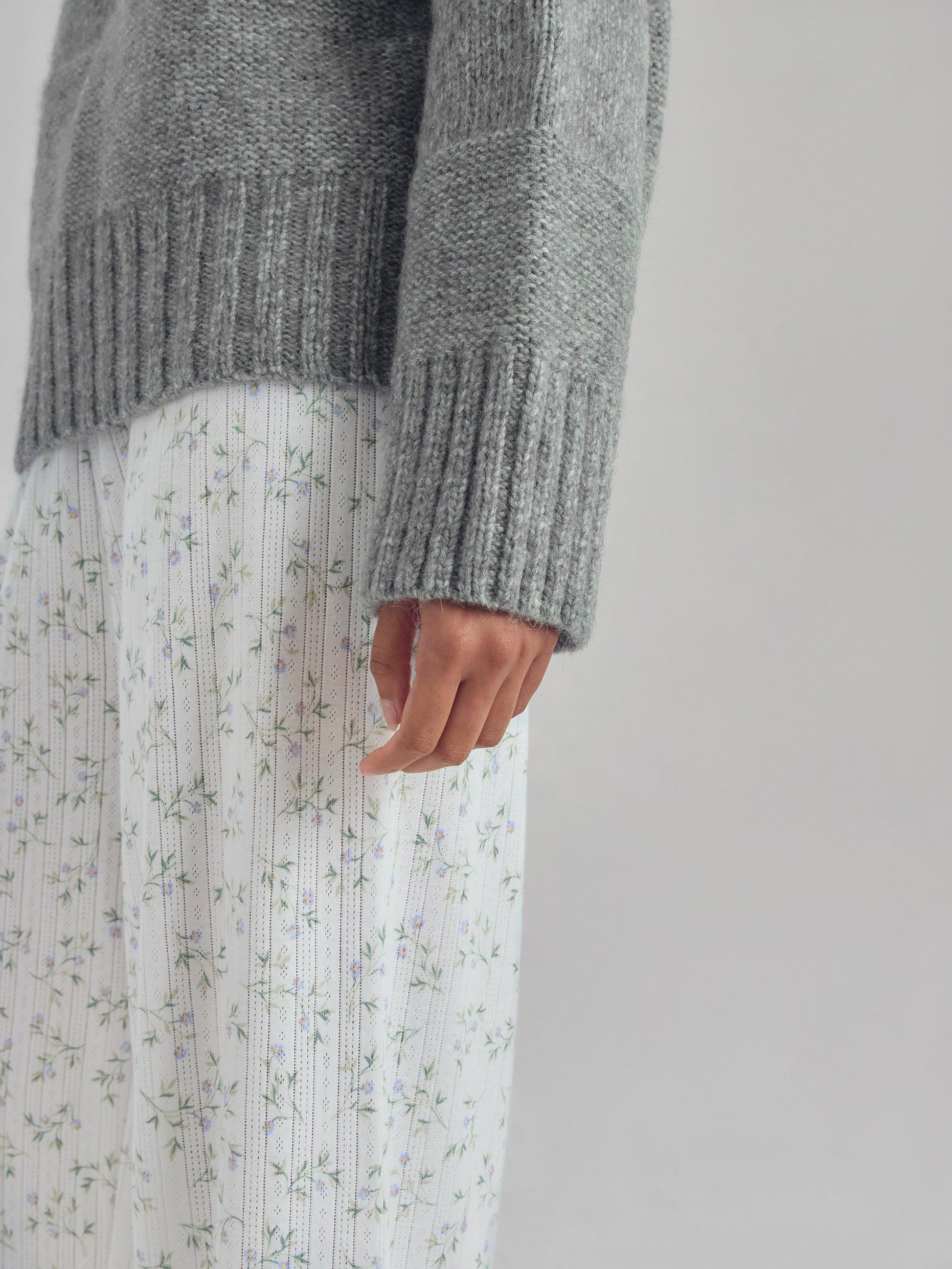 Soft, versatile and effortlessly cosy, this Grey Crew Neck Wool Jumper is a cold-weather staple. With a relaxed silhouette, ribbed trims and a classic crew neckline, it’s perfect for layering over loungewear at home, or styling with jeans and trousers for easy, everyday wear.