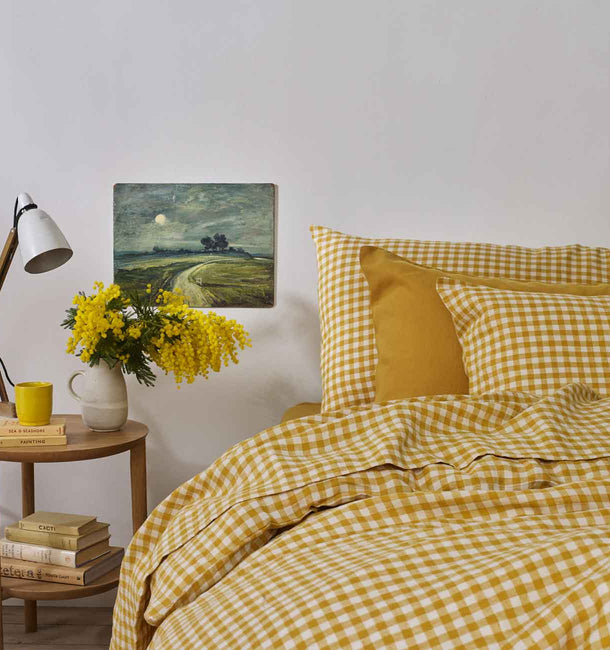 Timeless yet on-trend, our playful Honey Gingham linen blend flat sheet is the ultimate choice for modern cottagecore style. Made from only the highest-quality fibres, the breathable fabric combines the effortless look of linen with the softness of cotton. Layer in the colder months or use as a lightweight cover on warmer summer nights.
