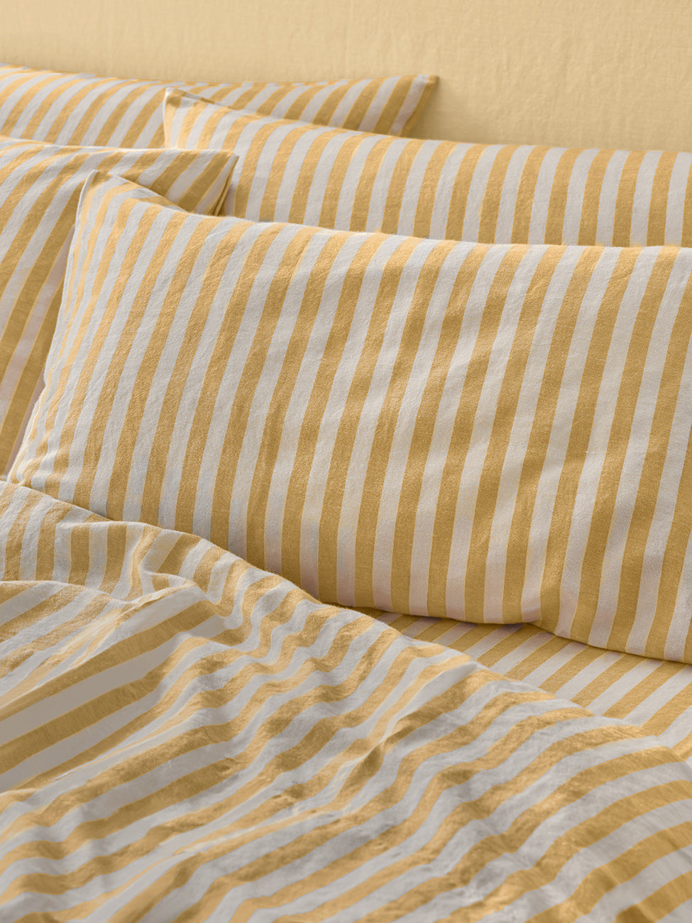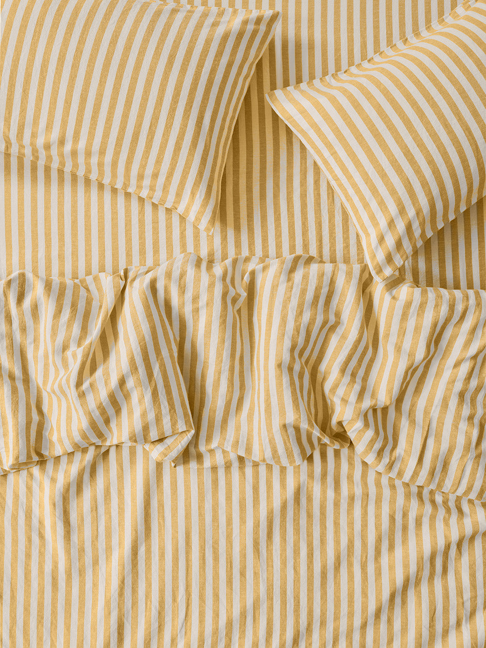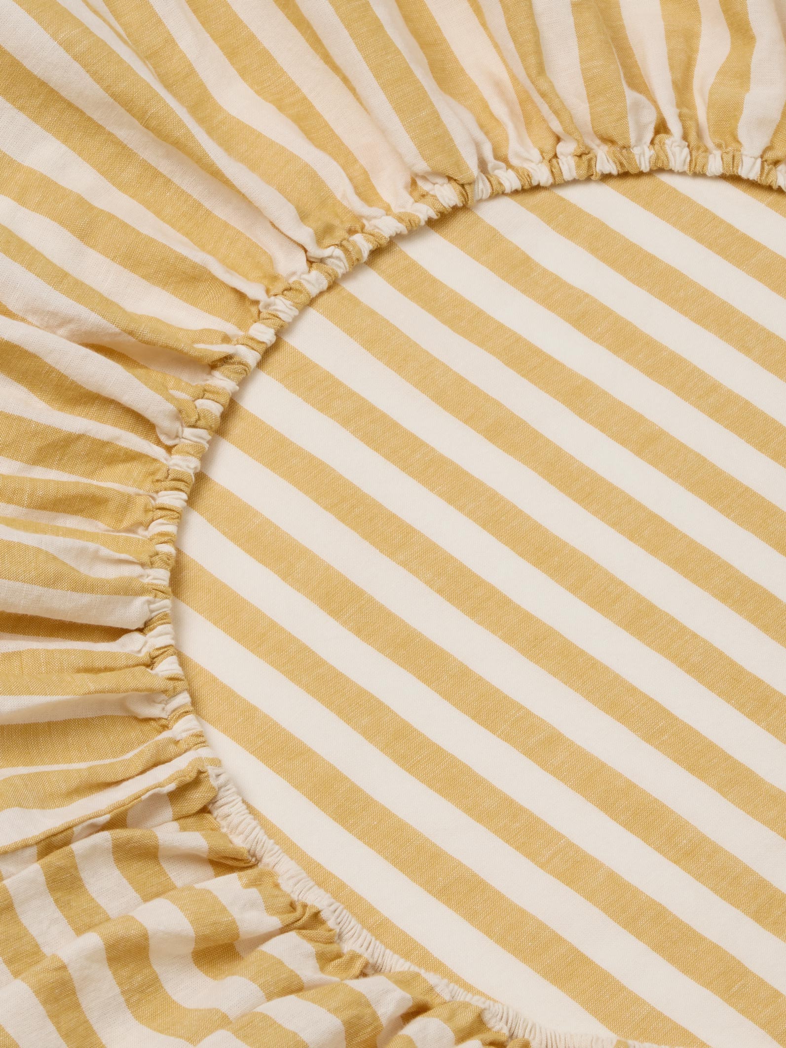 Nestle into nostalgia with our bold Honey Pembroke Stripe linen blend fitted sheet. Made from only the highest-quality fibres, this bedding combines the effortless look of linen with the softness of cotton. Like all our fitted sheets, it has elasticated edges right the way around and fits mattresses up to 40cm deep. Plus, handy inner labels make it easy to tell the long side from the short.