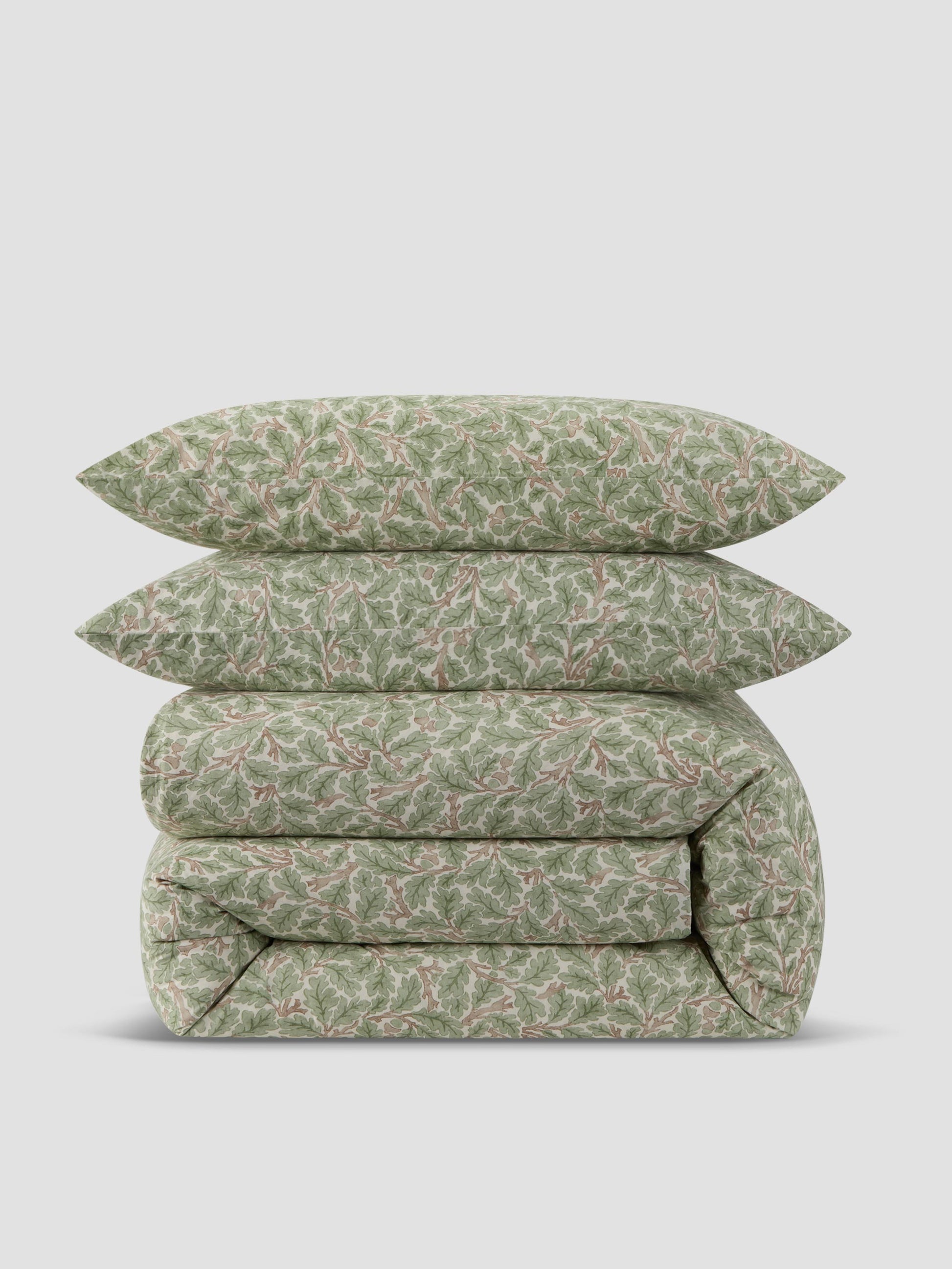 Leafy Arbour Oak Washed Cotton Percale Duvet Set