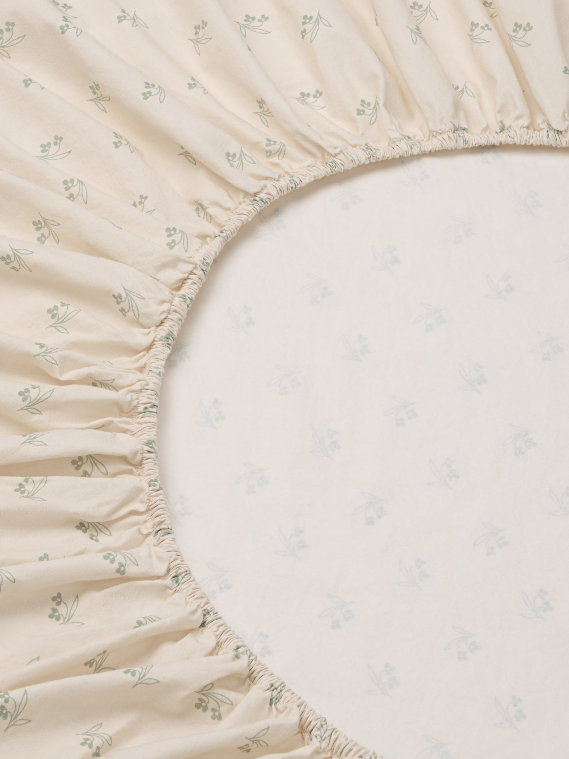 Mellow Green Martha Floral Cotton Fitted Sheet