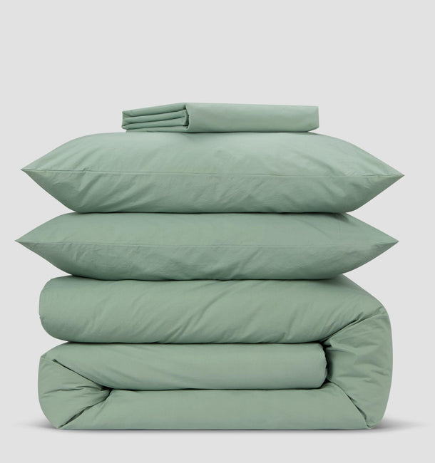 Mellow Green Washed Cotton Percale Pillowcases (Pair)