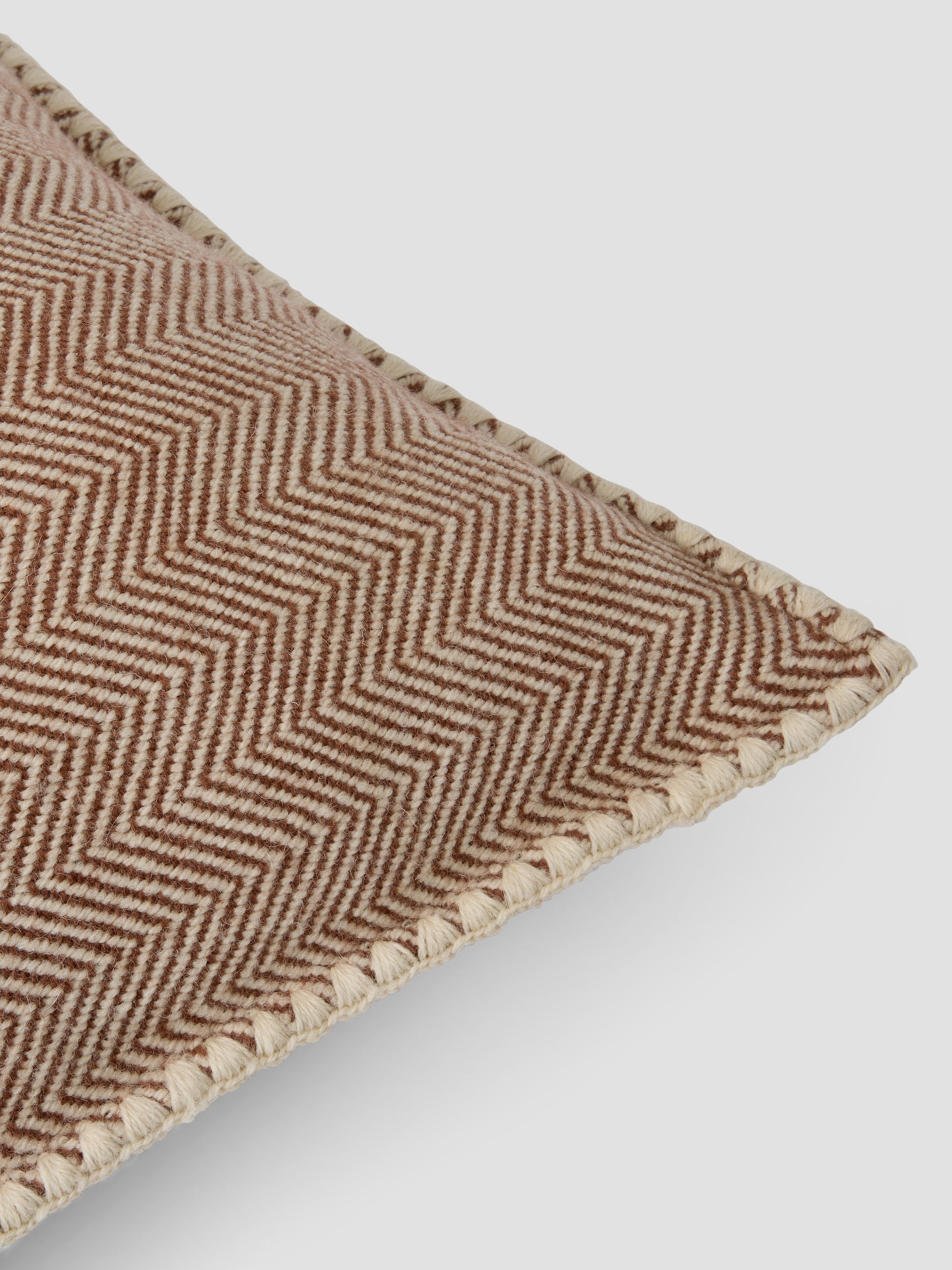 Alternating weaves of rich Mocha and soft cream form the classic zig-zag pattern of this Herringbone wool cushion cover. Pair it with complementary tones from our bedding collections or a matching blanket for a layered, cosy finish. For a luxuriously plump look, combine with our corresponding cushion insert.