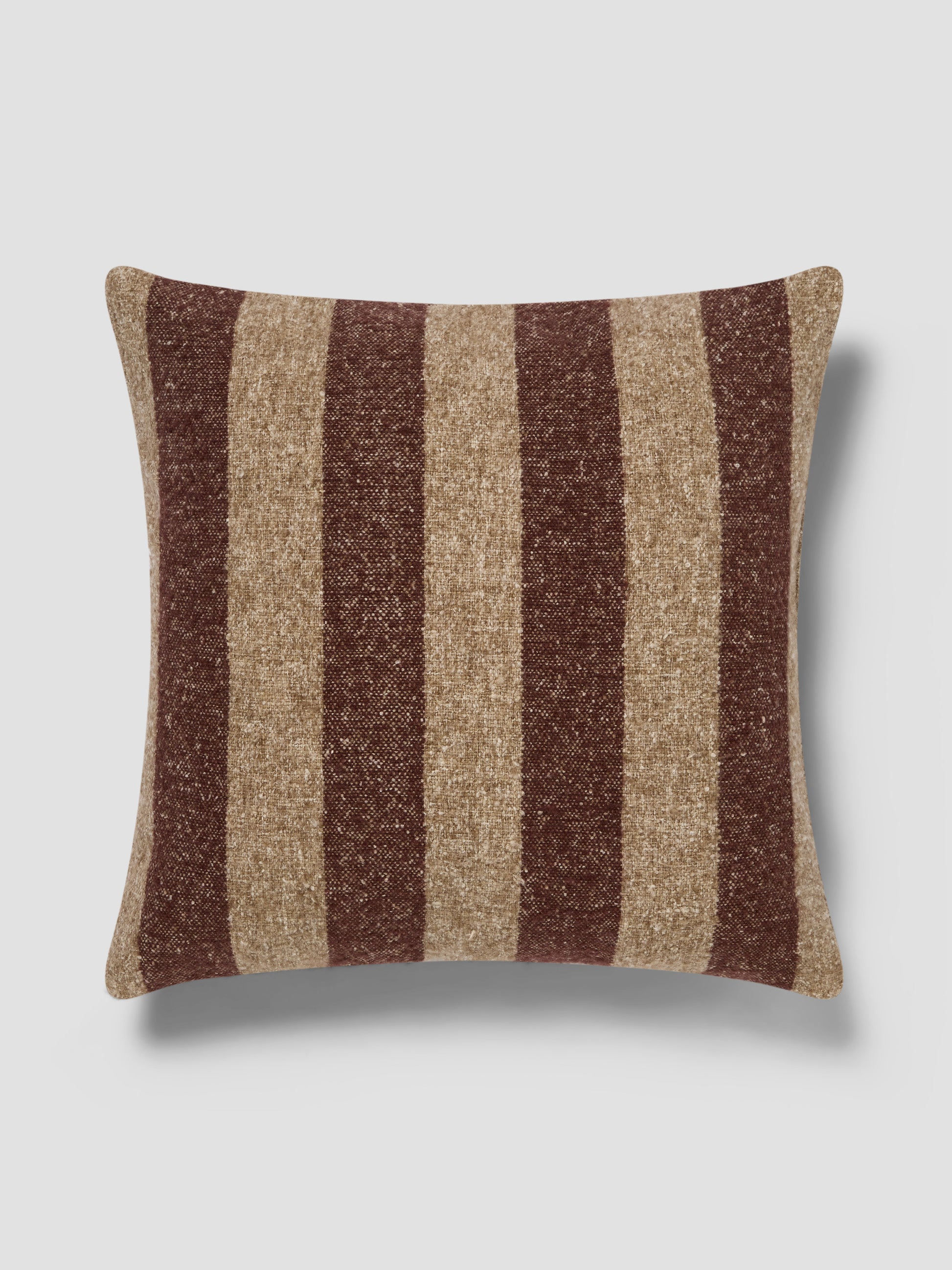 Need a little extra warmth and texture in your space? This flecked cushion is just the ticket. Woven from a soft wool blend, the wide stripes in dark Mocha and complementary Oatmeal give a lovely lived-in feel – perfect with our Pembroke Stripe bedding or matching hues. For a luxuriously plump look, combine with our corresponding cushion insert.