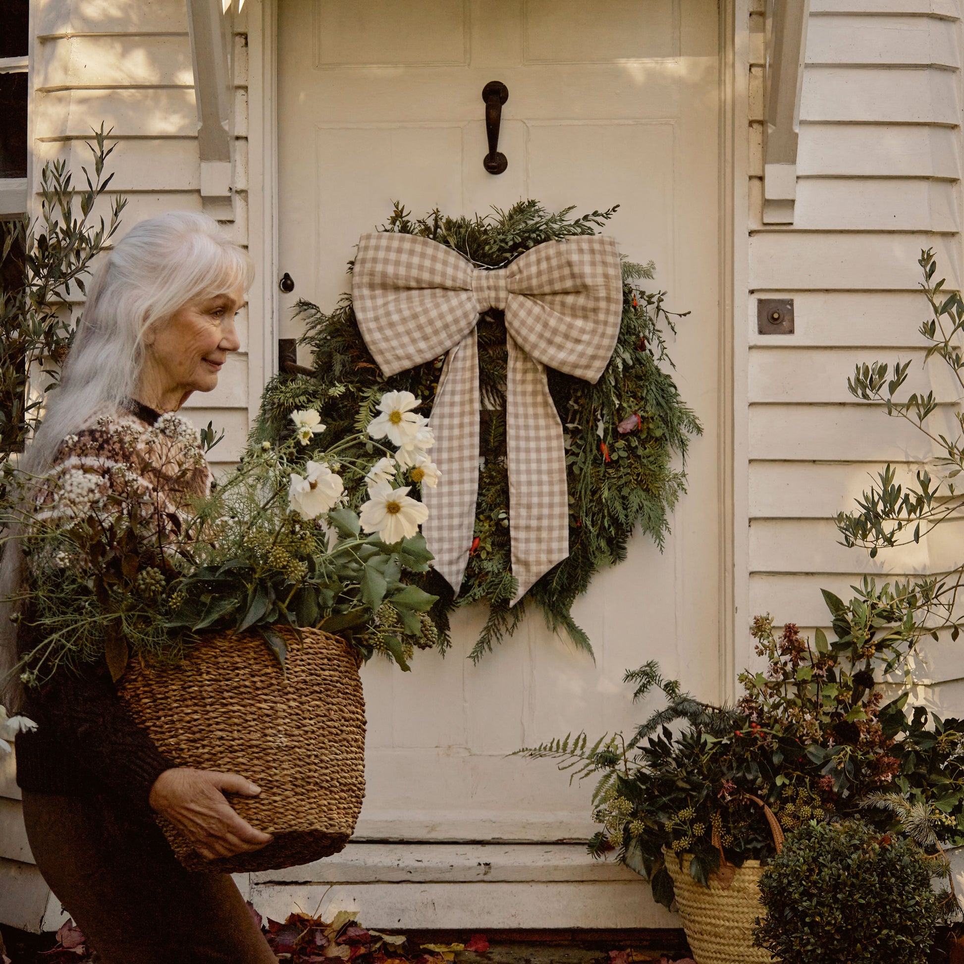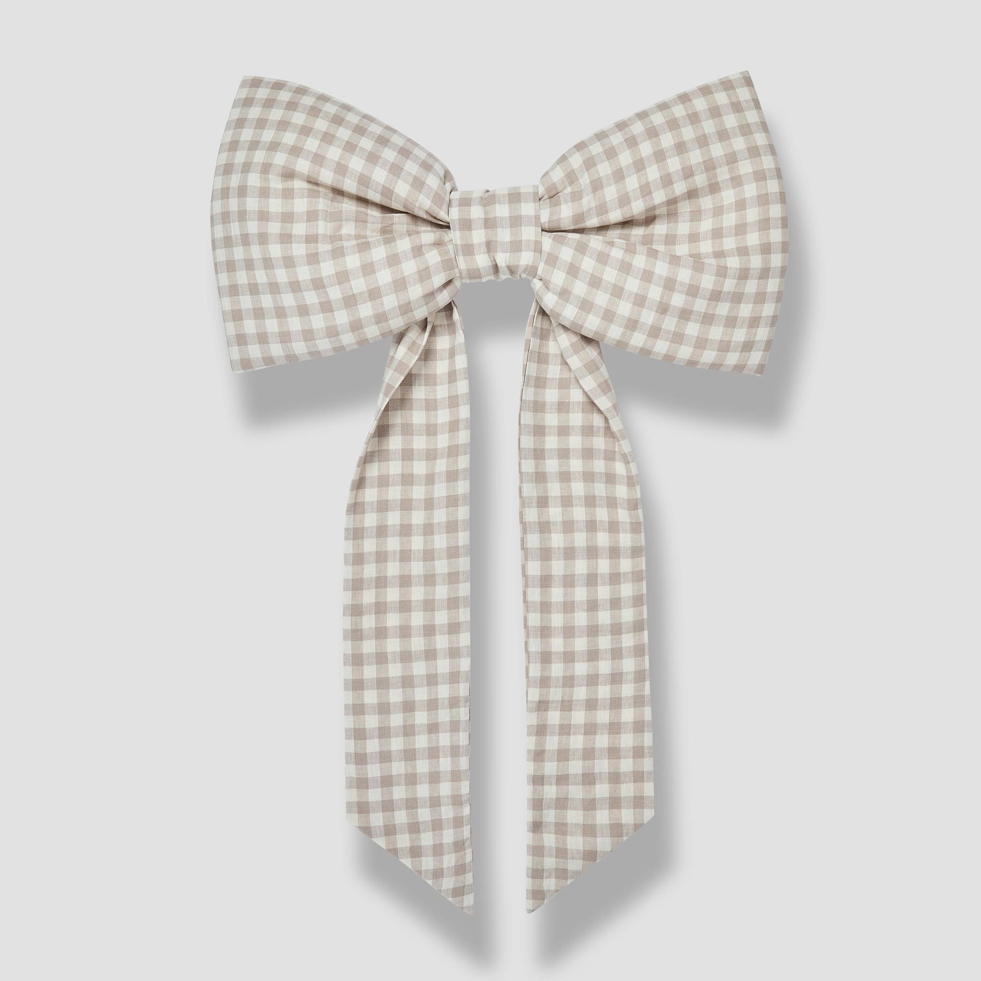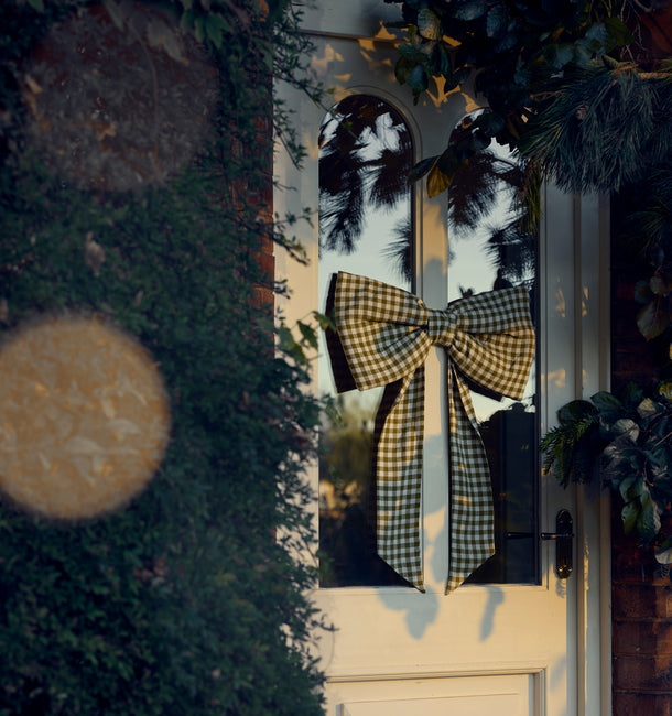 Deck the halls this holiday season with our show-stopping Mushroom Gingham linen bow. Adding a touch of joy to any space, these oversized bows are perfect for topping your tree, hanging above the fireplace, or as a charming alternative to a door wreath.