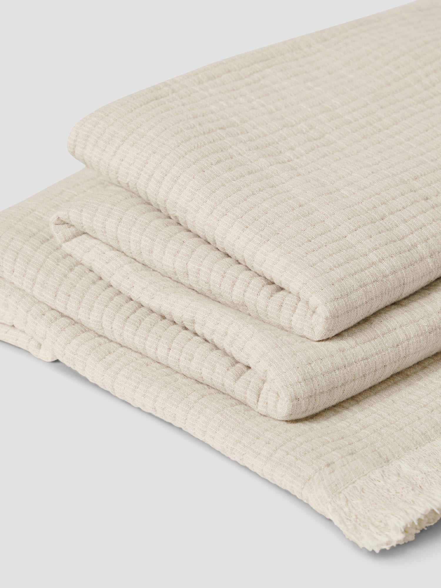 The Oatmeal cotton textured throw is expertly woven with a double-weave design, creating a subtle, ruched texture that offers breathable warmth and a soft finish. Topped off with delicate fringed edges, this throw is perfect for layering on a bed or draping over your favourite armchair.