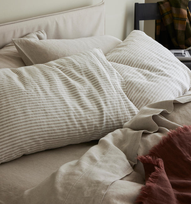 Woven with care in Guimarães in Northern Portugal, our linen blend bedding combines the breezy softness of high quality European flax with the smooth comfort of cotton. Made by a family-run mill with over a century of expertise, each piece carries the heritage of their historic hillside city, where rolling vineyards and lush greenery surround the looms. Using only the finest OEKO-Tex Standard 100 certified flax, our bedding is designed to be as beautiful to sleep in as it is to wake up to.