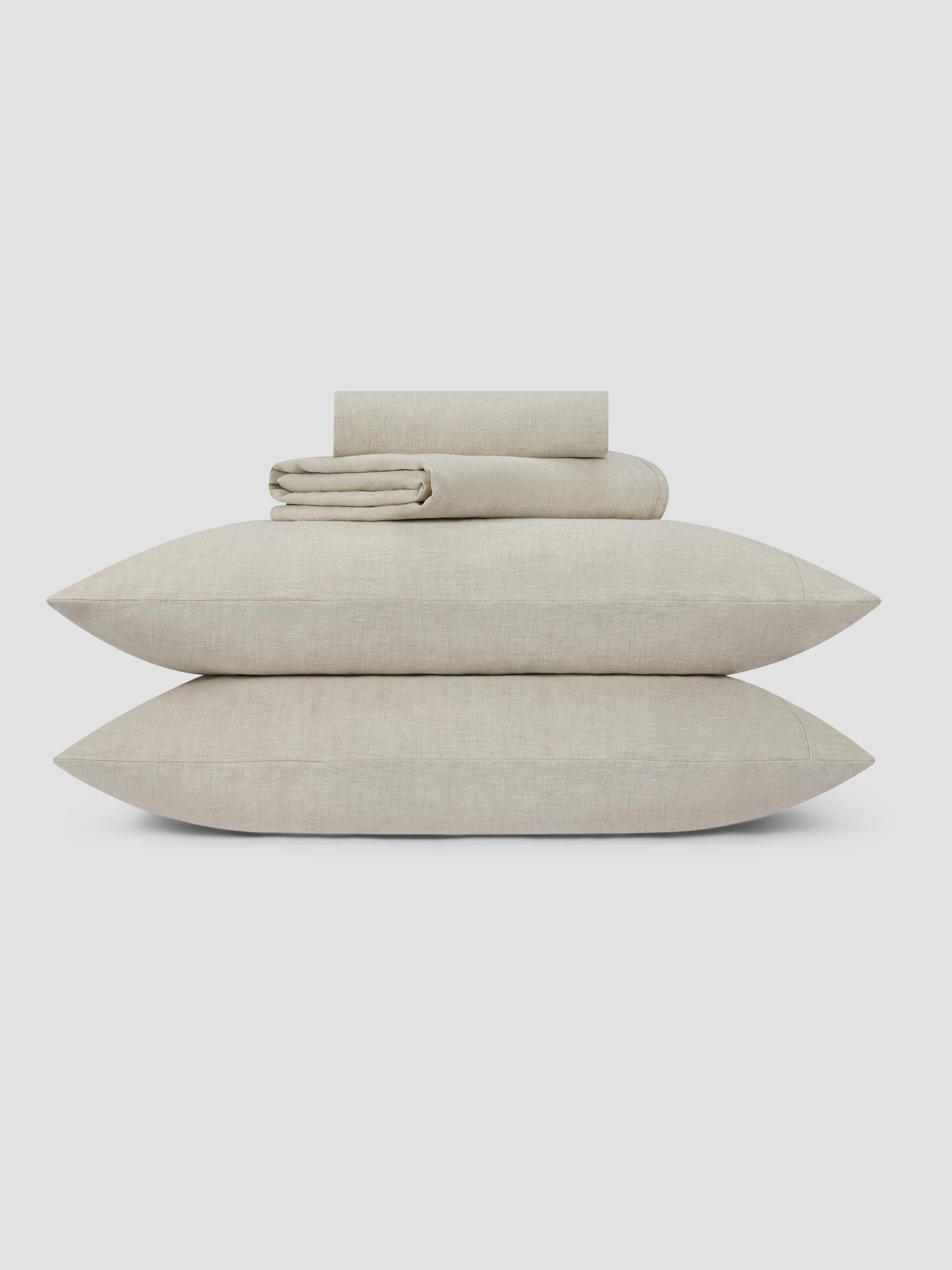 Our Oatmeal linen blend sheet set is the perfect neutral hue for creating a relaxed and soothing space. Made from only the highest-quality fibres, the breathable fabric combines the effortless look of linen with the softness of cotton. Our sheet set includes one pair of pillowcases, one fitted sheet and one flat sheet.