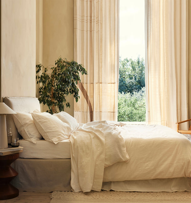Woven with care in Guimarães in Northern Portugal, our linen blend bedding combines the breezy softness of high quality European flax with the smooth comfort of cotton. Made by a family-run mill with over a century of expertise, each piece carries the heritage of their historic hillside city, where rolling vineyards and lush greenery surround the looms. Using only the finest OEKO-Tex Standard 100 certified flax, our bedding is designed to be as beautiful to sleep in as it is to wake up to.