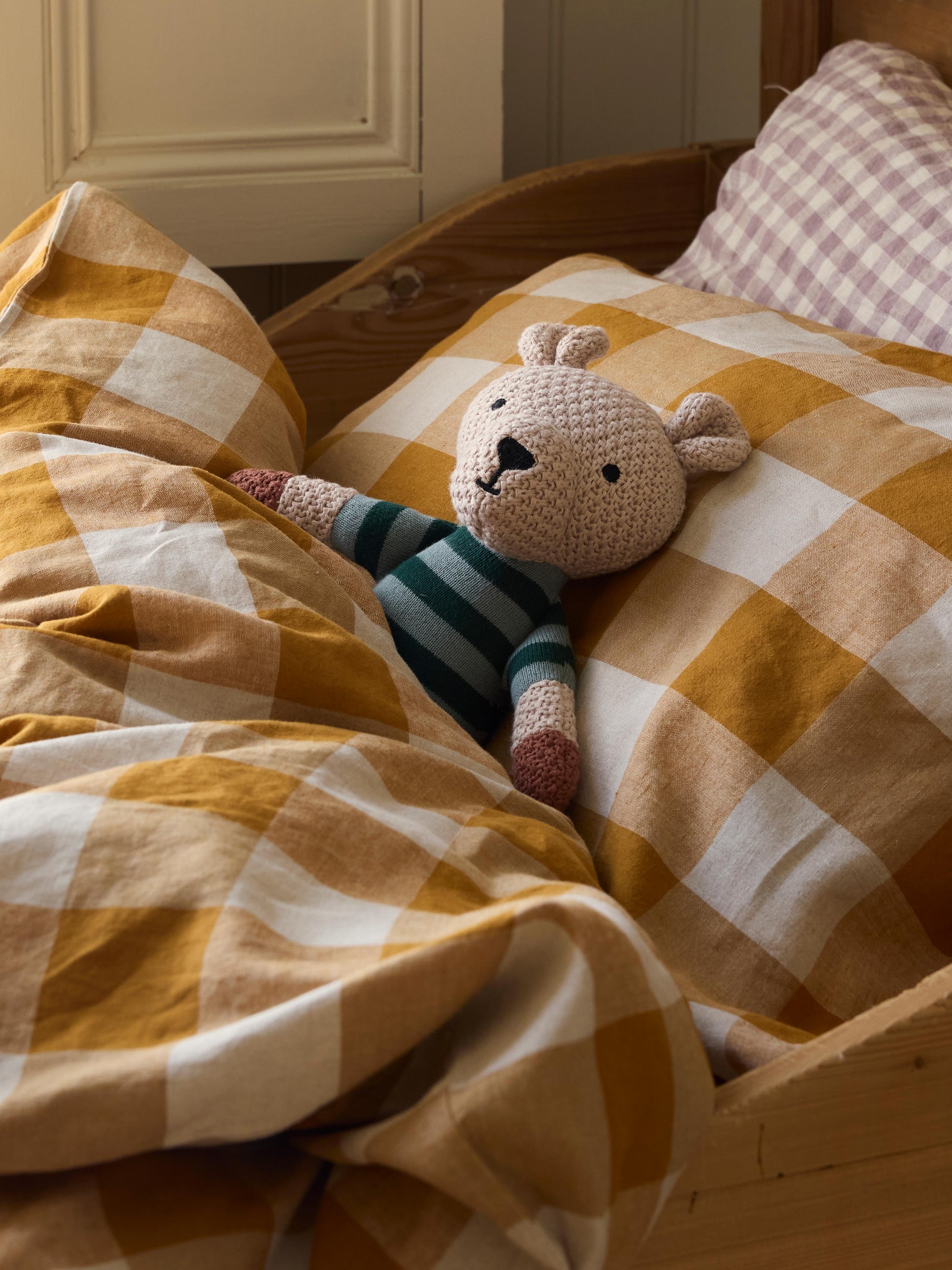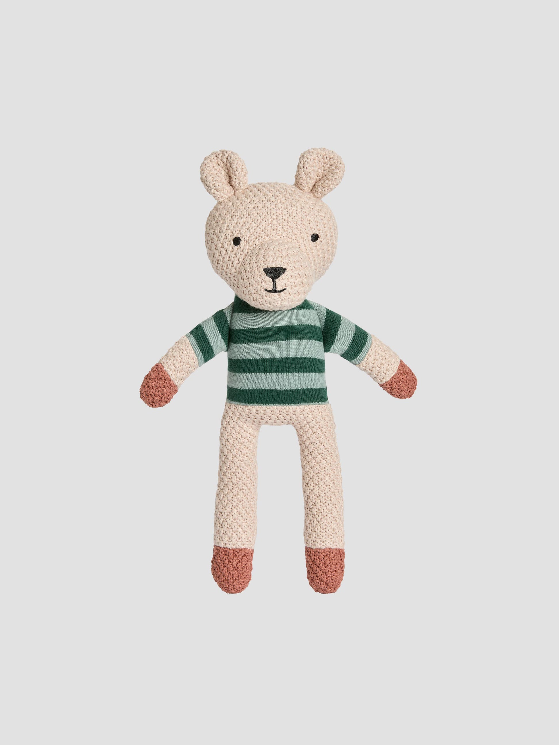 Meet Bennie, the ultimate cuddly companion for little ones! Dressed in a playful Pembroke Stripe jumper, this teddy bear is always ready for everyday adventures or snuggles at home. Crafted from soft, knitted cotton and hand embroidered with love, slight variations make each Bennie bear unique.