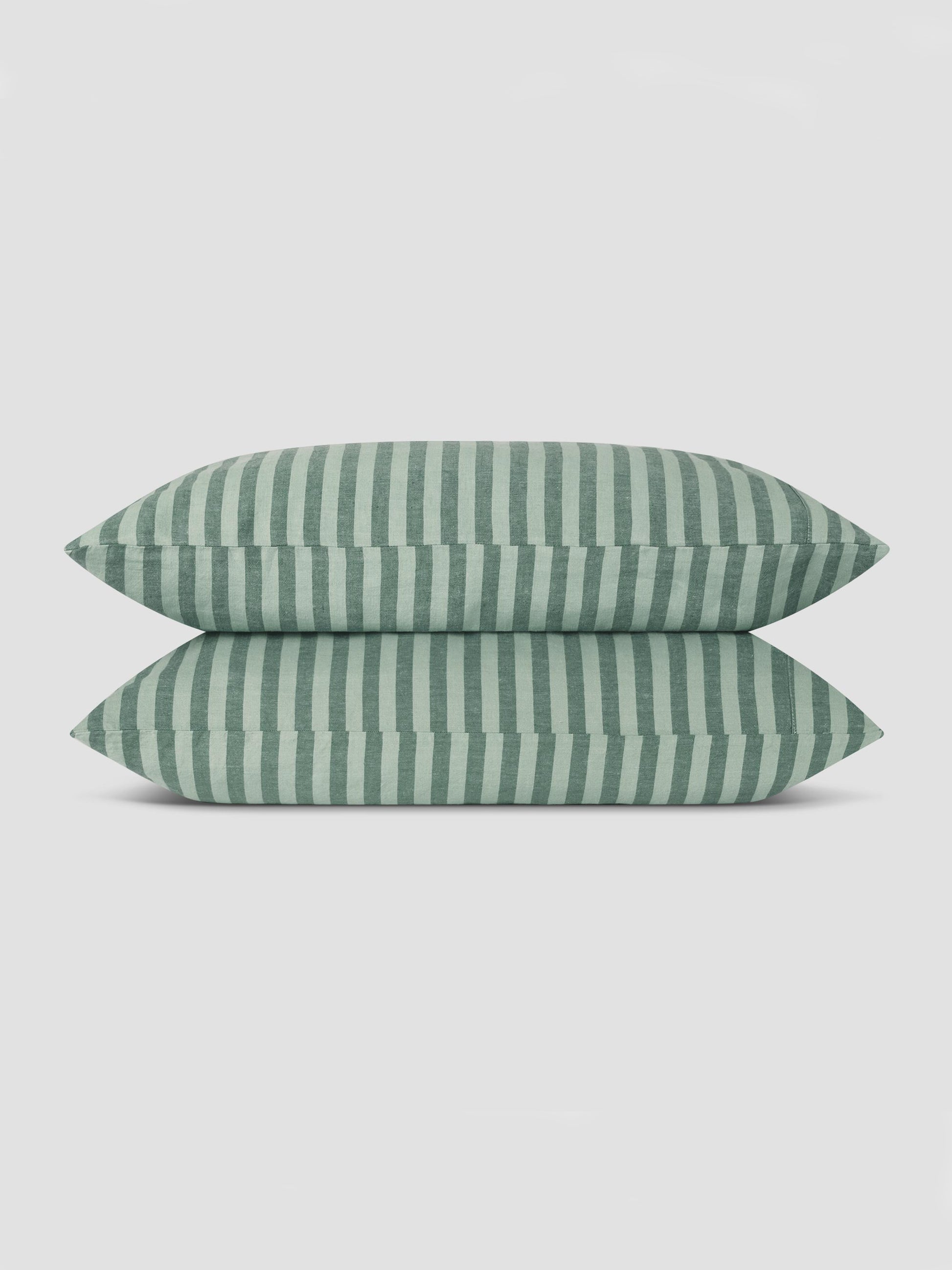 Pine Green Pembroke Stripe Linen Blend Pillowcases (Pair)