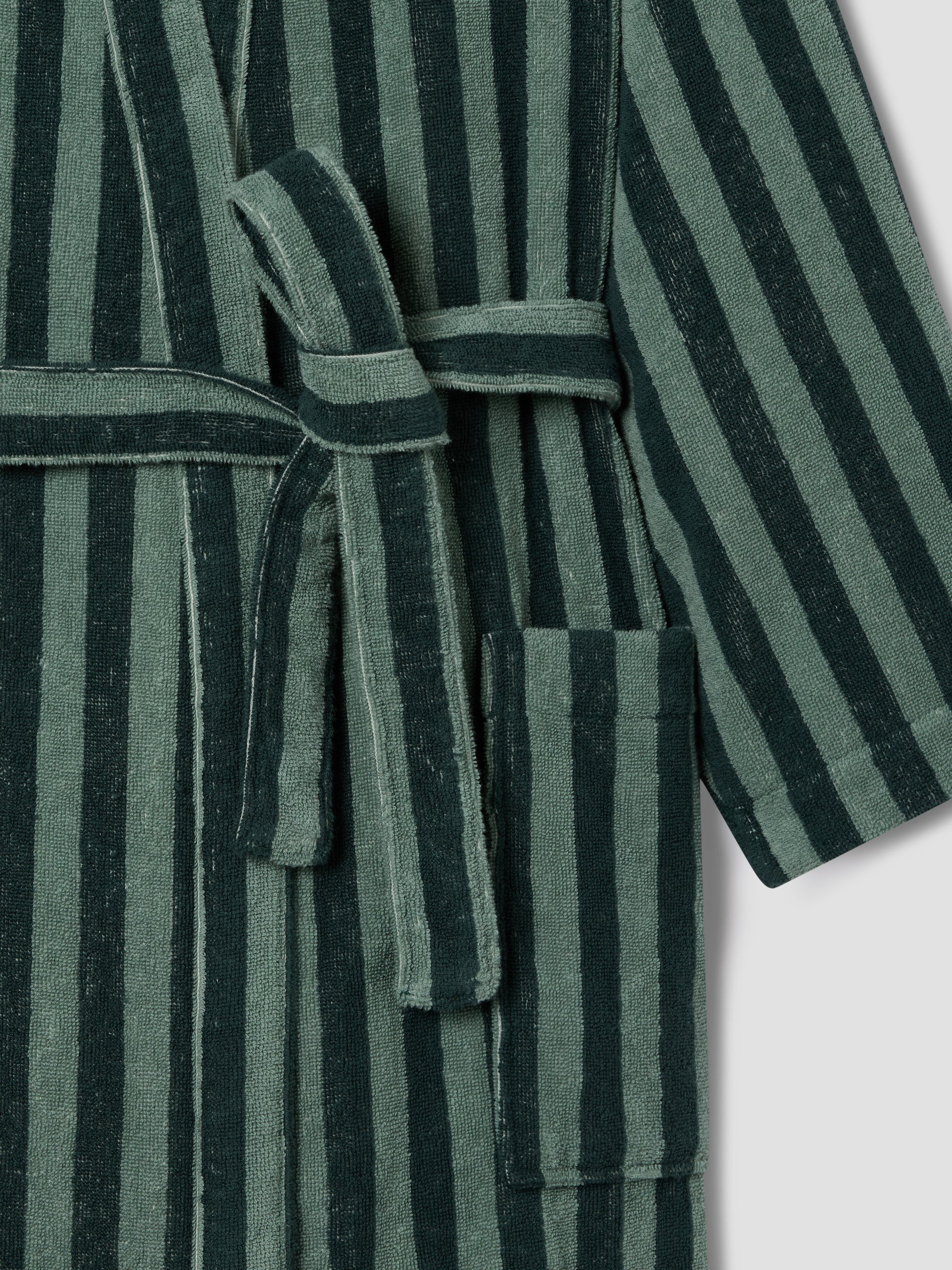 Envelope yourself in plush, natural comfort with our Pine Green Pembroke Stripe Cotton Robe. Made from sustainably sourced zero-twist cotton, this absorbent bath robe is super soft and smooth – just like our best-selling towels. Our striped robes feature handy side pockets, an adjustable waist tie and kimono-inspired sleeves.