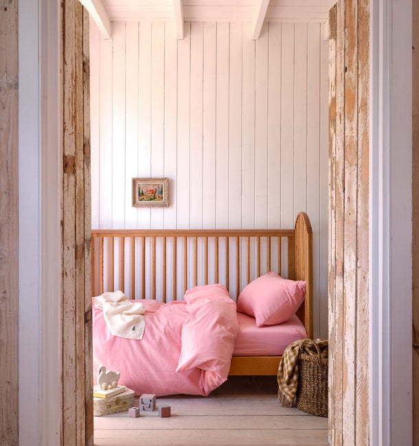 With a joyful, rosy hue, our Pink Bloom Kids linen blend fitted sheet is the perfect pastel for a playful yet elevated bedroom. Made from only the highest-quality fibres, the fabric combines the relaxed look of linen with the softness of cotton, for breathable bedding that’s gentle on even the most sensitive skin. Our kids’ fitted sheets are suitable for cot bed mattresses (70cm x 140cm x 15cm) and have elasticated edges all the way around for a perfectly snug fit.