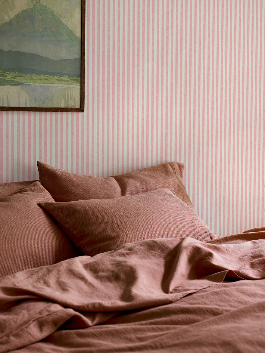 Mirroring our much-loved Piglet in Bed pattern, this iconic Pembroke Stripe wallpaper adds a touch of playfulness and unique character to any space. Our non-woven wallpaper is easy to apply and incredibly hardwearing, with a thick feel and textile-like appearance.