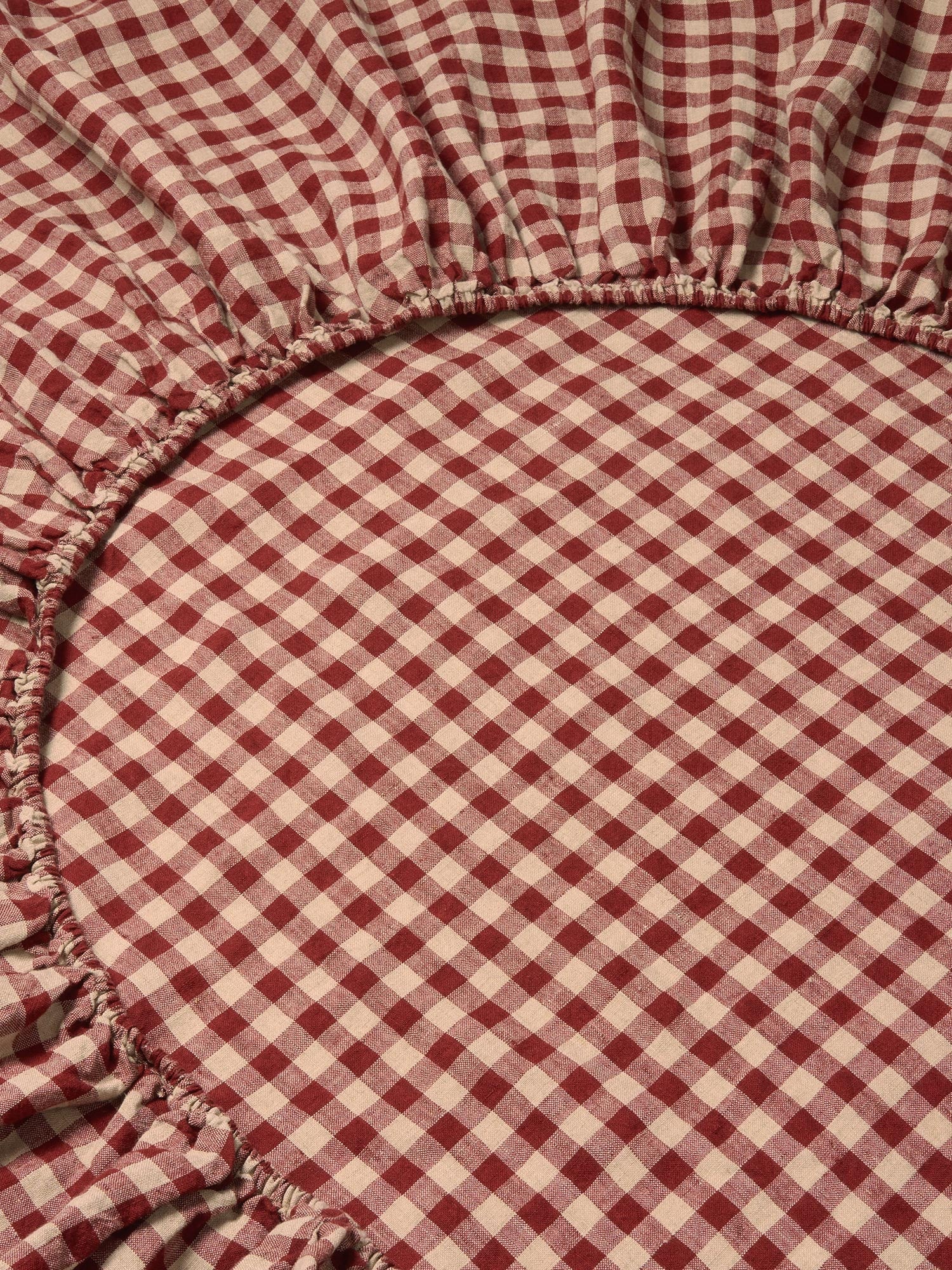 Rhubarb Gingham Linen Blend Fitted Sheet