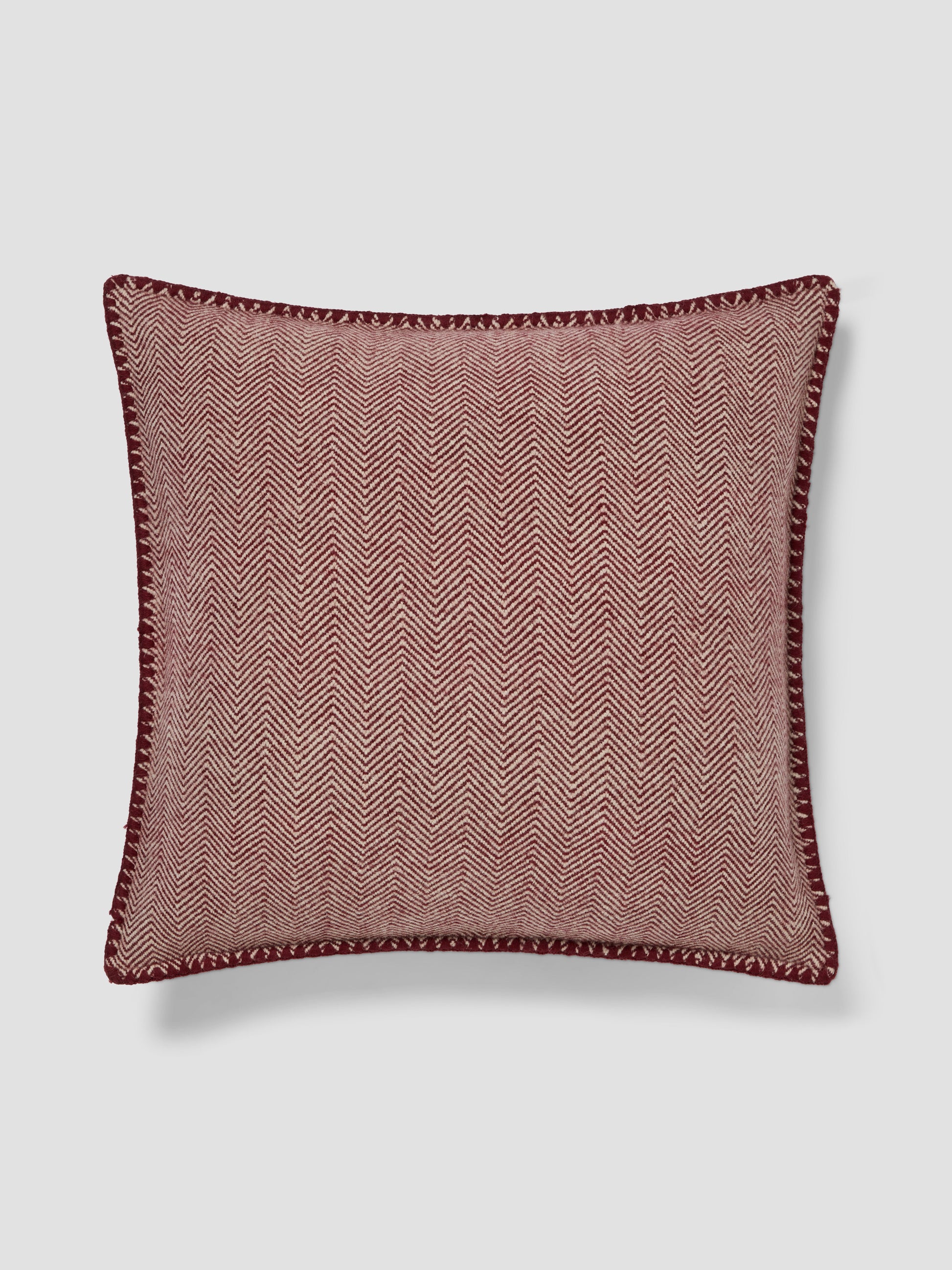 Alternating weaves of rich Rhubarb and soft cream form the classic zig-zag pattern of this Herringbone wool cushion cover. Pair it with complementary tones from our bedding collections or a matching blanket for a layered, cosy finish. For a luxuriously plump look, combine with our corresponding cushion insert.