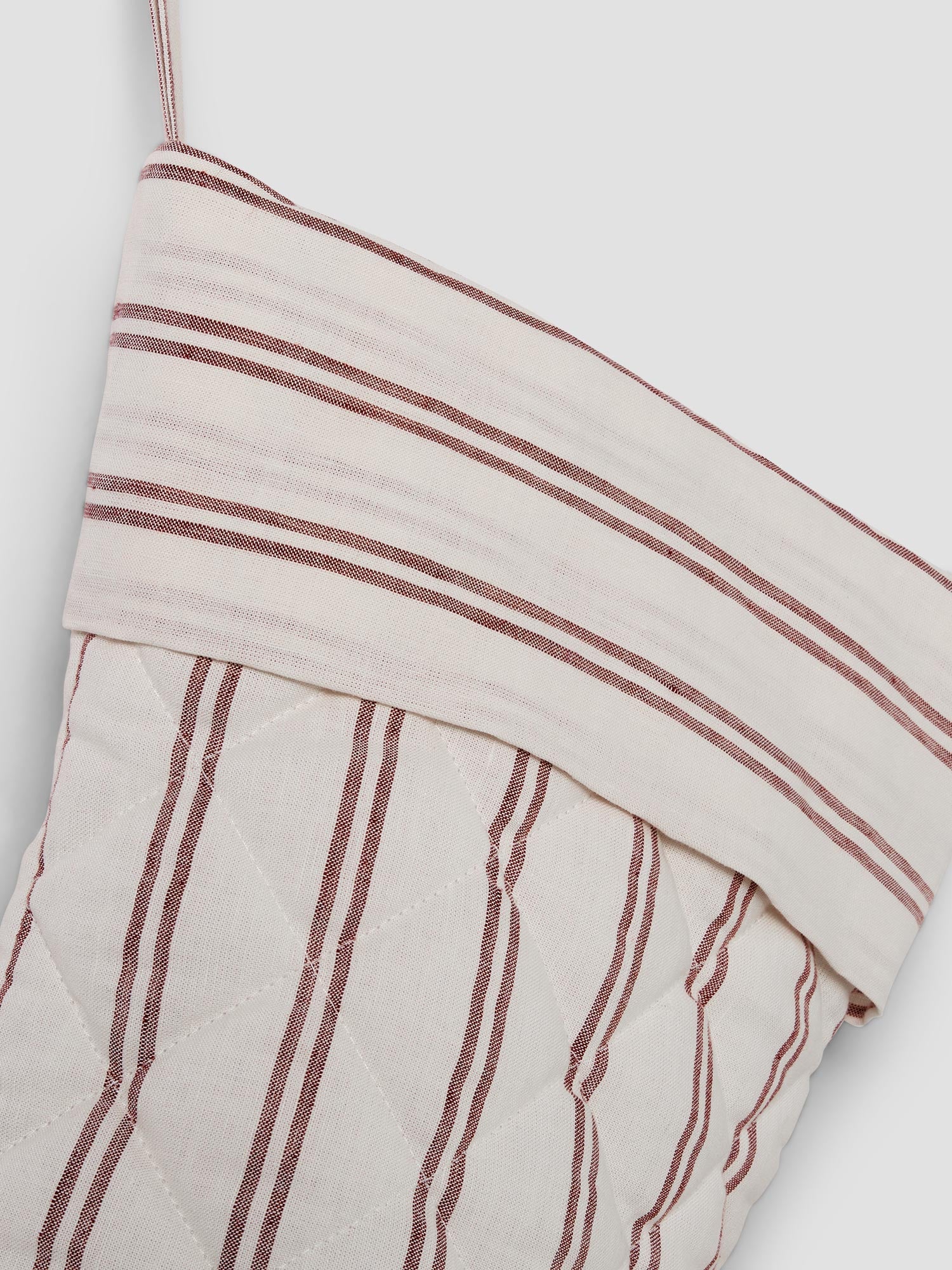 A playful twist on a holiday classic, our Christmas stockings are perfect for hanging on the mantelpiece or adding festive flair throughout your home. Crafted from our Rhubarb Kemptown Stripe linen blend fabric, these quilted stockings have plenty of room for small gifts and treats for everyone on the nice list!