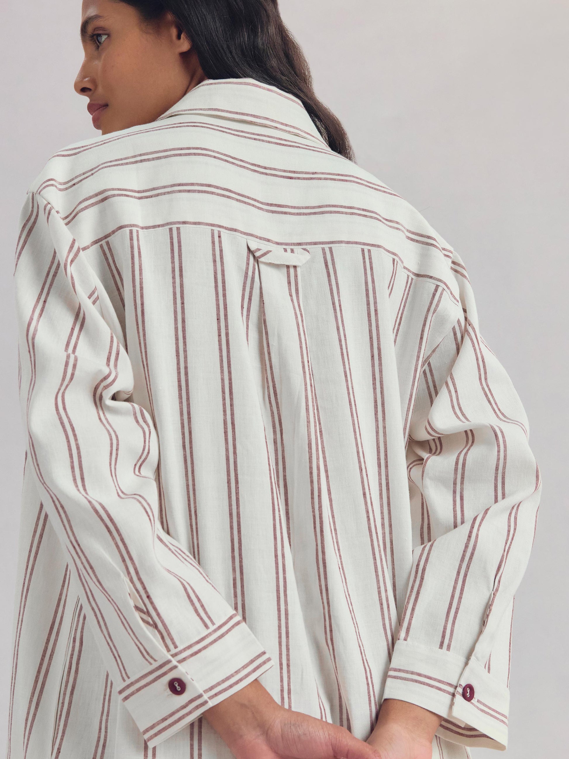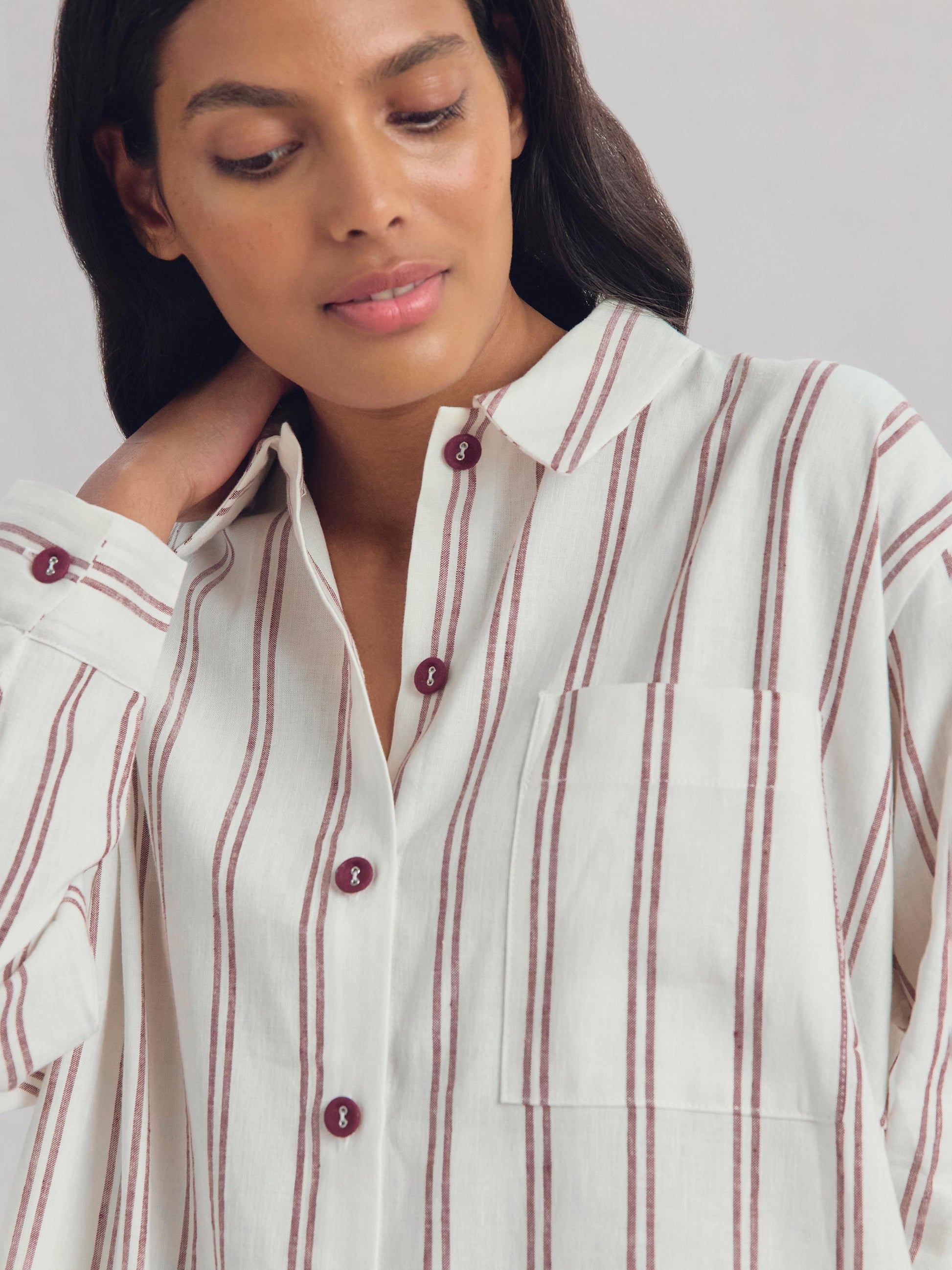Woven from our signature linen blend fabric, this Kemptown Stripe nightshirt in rich Rhubarb is naturally soft and breathable for a blissful night’s sleep. With its oversized style and comfortable fit, it’s perfect for early nights snuggled up in bed and lazy mornings padding around the house.