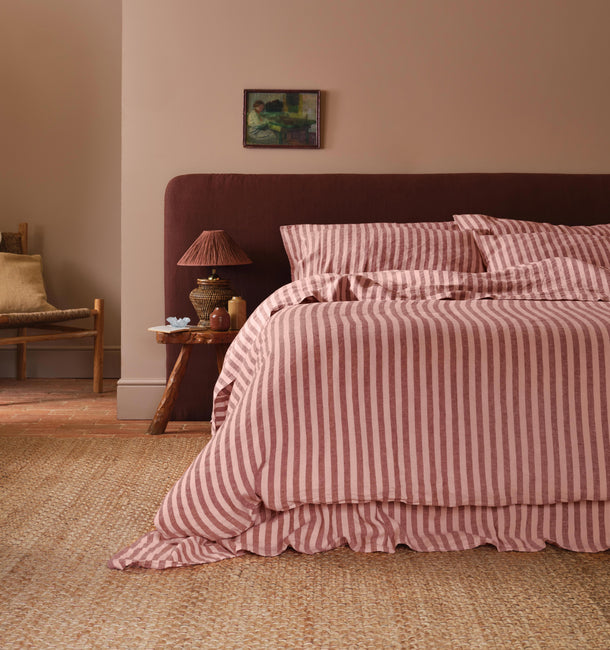 Nestle into nostalgia with our bold Rhubarb & Rose Pembroke Stripe 100% linen pillowcases. Made from European flax for a beautiful lived-in look, our linen bedding is lightweight yet durable and only gets softer with wear. All our pillowcases have envelope closures, making sure your pillow stays out of sight.