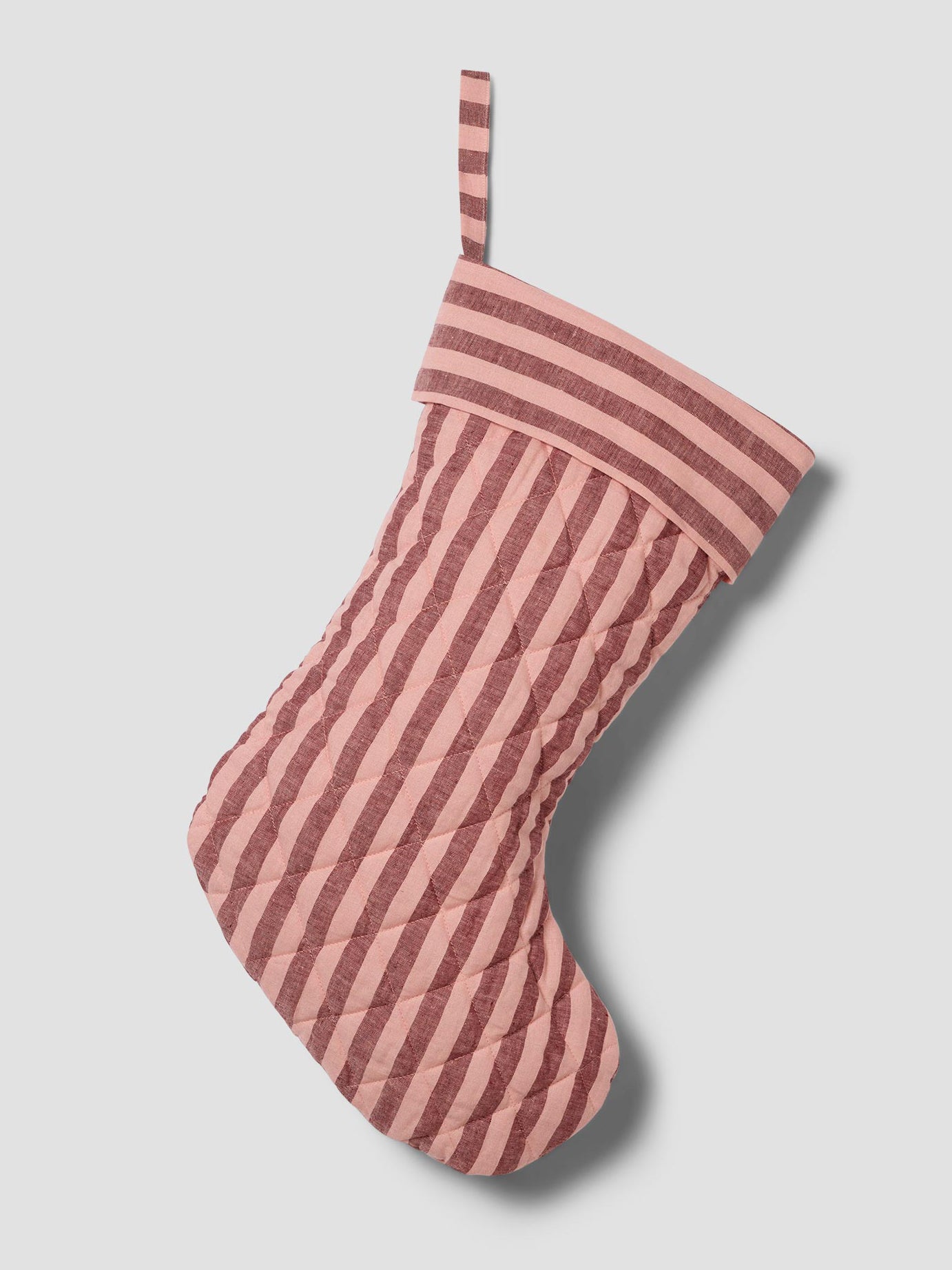 A playful twist on a holiday classic, our Christmas stockings are perfect for hanging on the mantelpiece or adding festive flair throughout your home. Crafted from our Rhubarb & Rose Pembroke Stripe linen blend fabric, these quilted stockings have plenty of room for small gifts and treats for everyone on the nice list!
