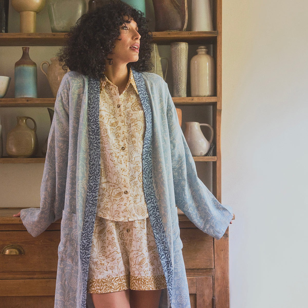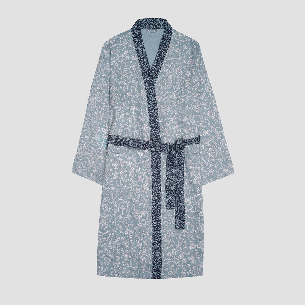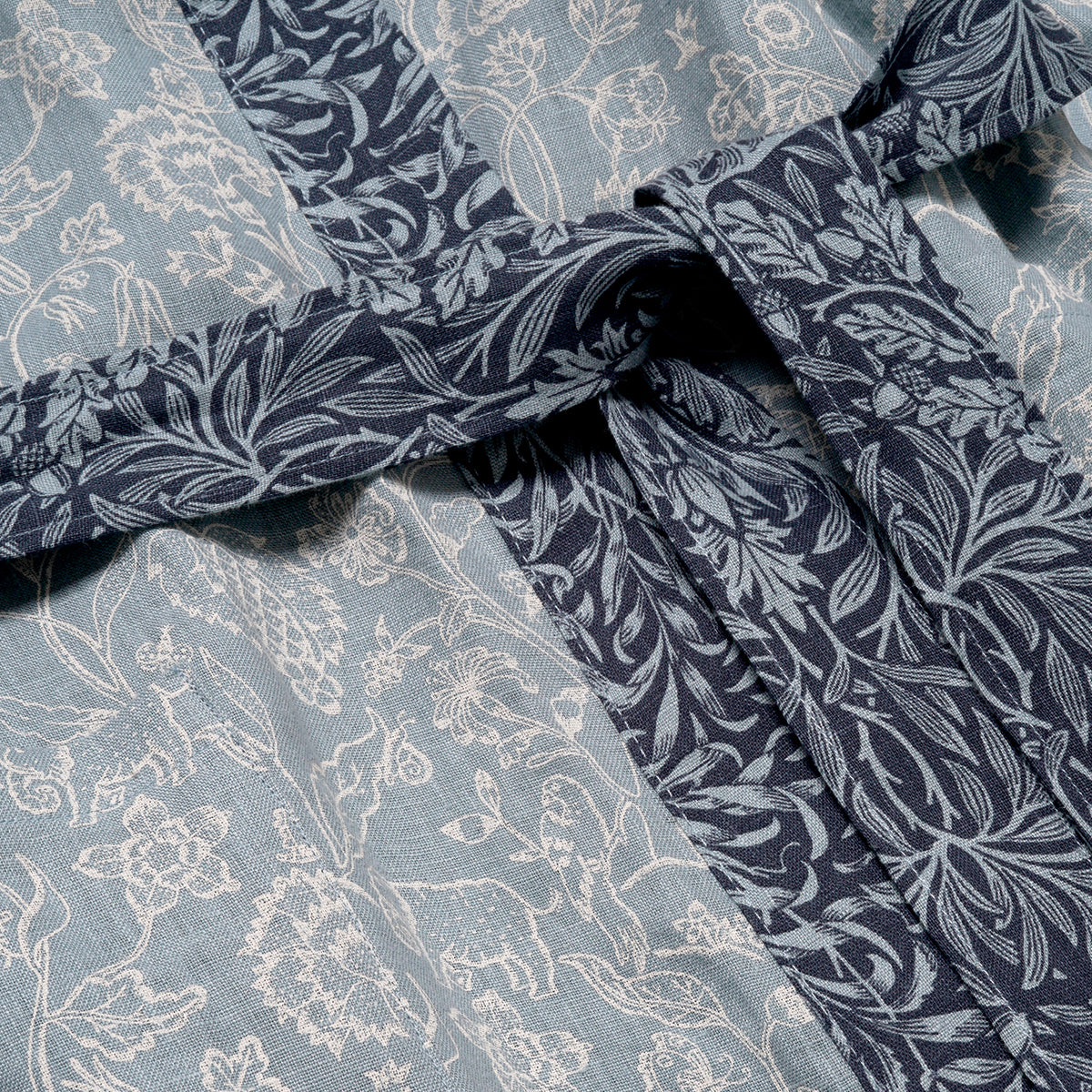 Designed in collaboration with Morris & Co., our River Wandle linen robe features the whimsical Middlemore pattern inspired by a quilt embroidery created by May Morris in 1889. Featuring delicately drawn flora and fauna, the classic motif pays homage to the brand’s rich heritage while faithfully reimagining it for modern living.